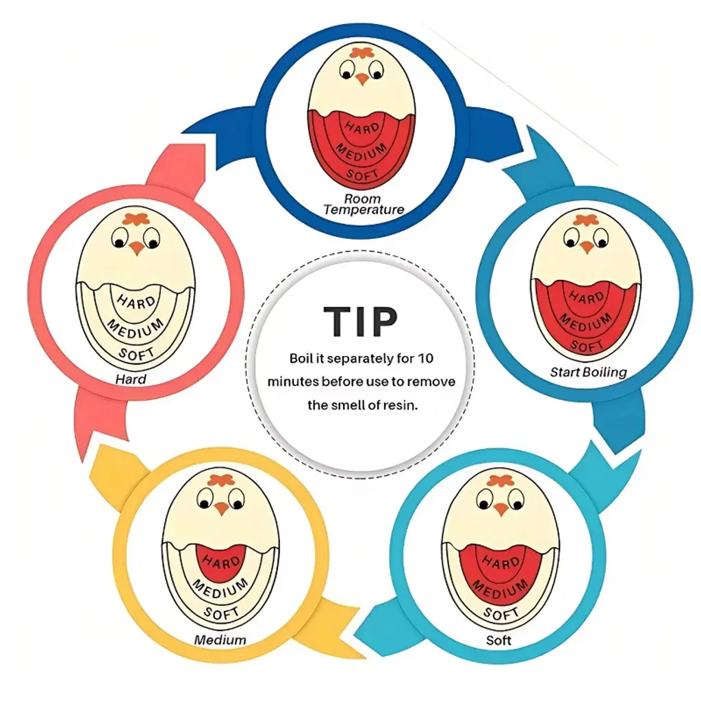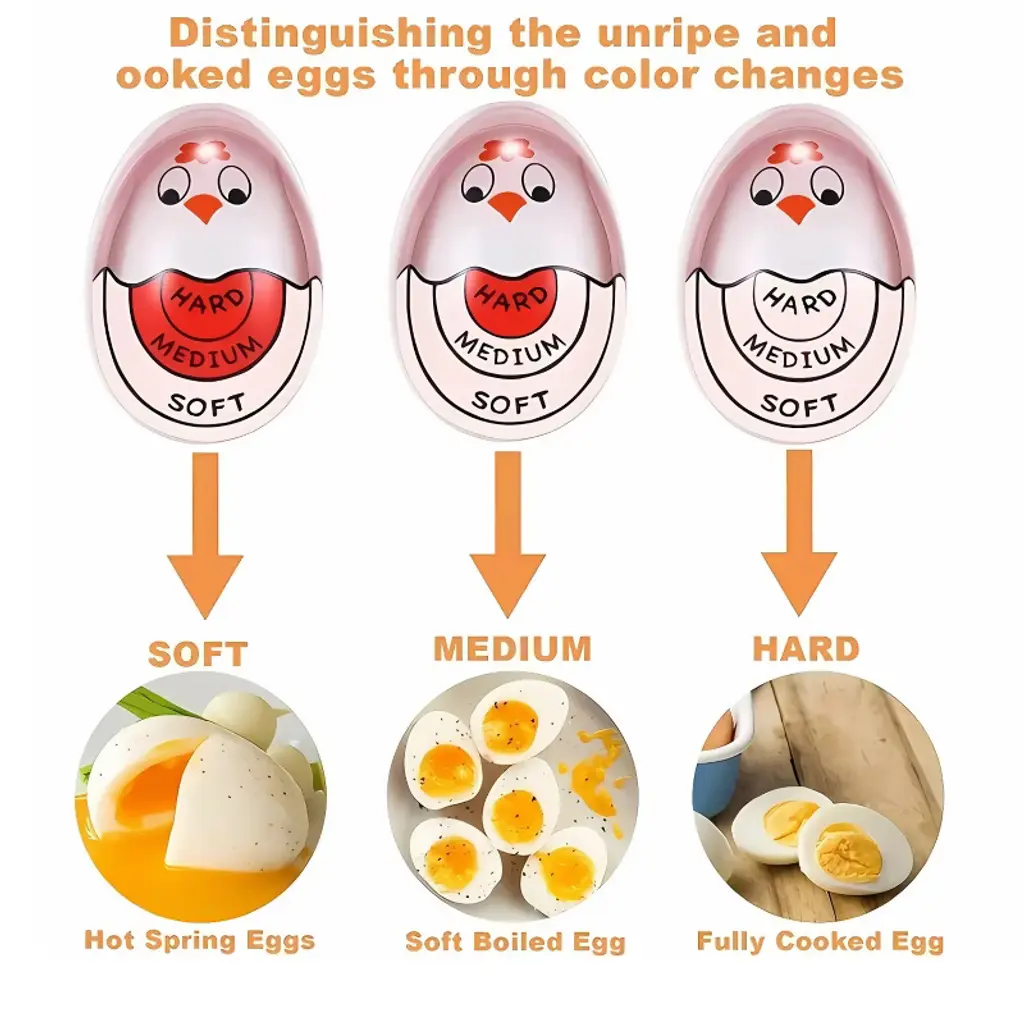 This chick-shaped egg timer is a handy kitchen tool that helps you achieve perfectly boiled eggs every time. Designed with a sensitive color-changing indicator, it shows the doneness level—whether soft, medium, or hard—so you can cook with confidence and precision. Ideal for home kitchens, restaurants, and bakeries, this gadget makes boiling eggs simple and foolproof.