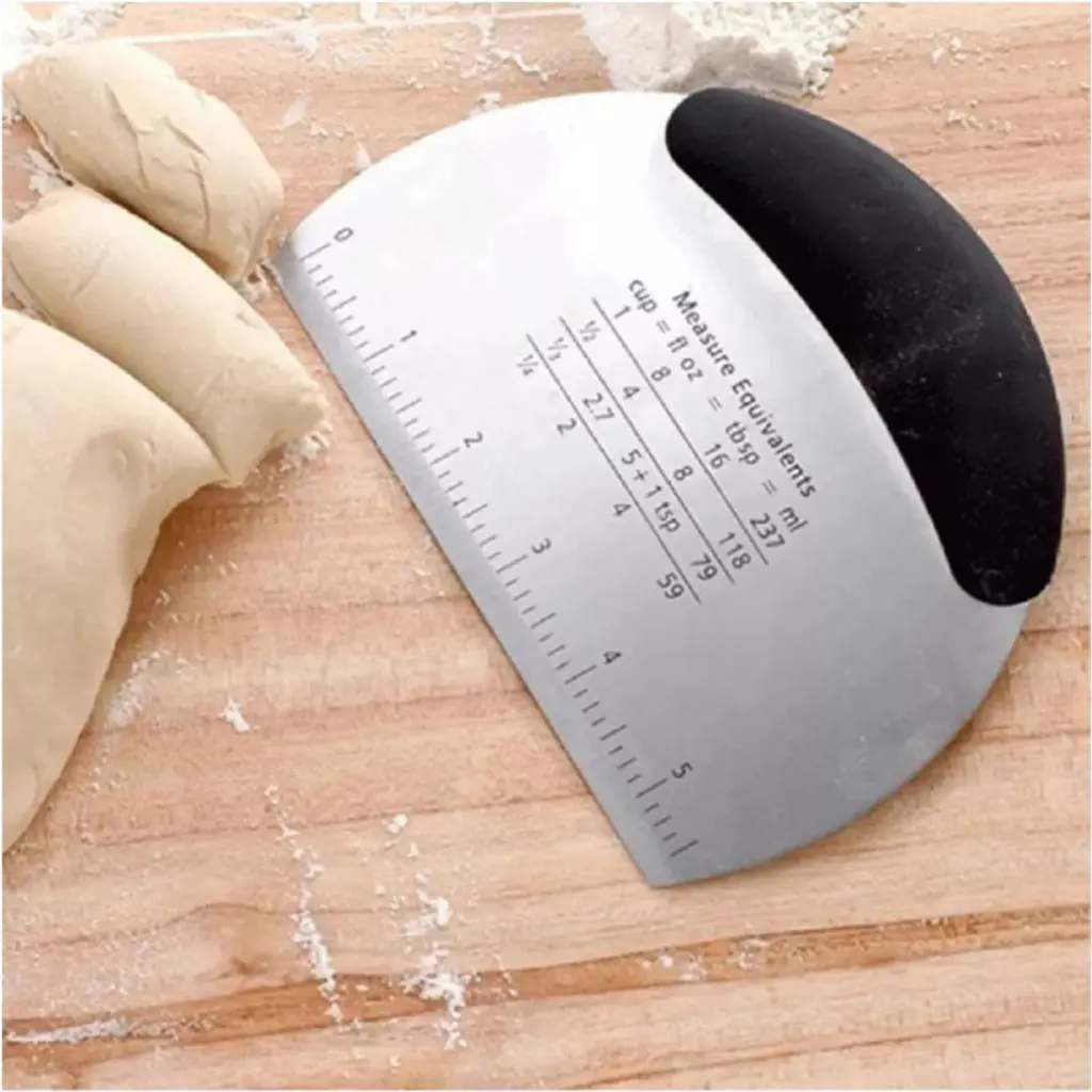 Made from high-grade stainless steel, this durable dough scraper is perfect for all your baking tasks, from scraping and chopping to measuring dough for pizzas, pastries, and cakes. The precise etched measurement markings ensure accurate portions, while the ergonomic non-slip handle offers a comfortable grip to reduce hand fatigue. Its seamless, rust-resistant design is easy to clean and dishwasher safe, making it a dependable tool for both home and professional kitchens.