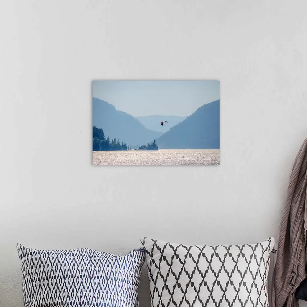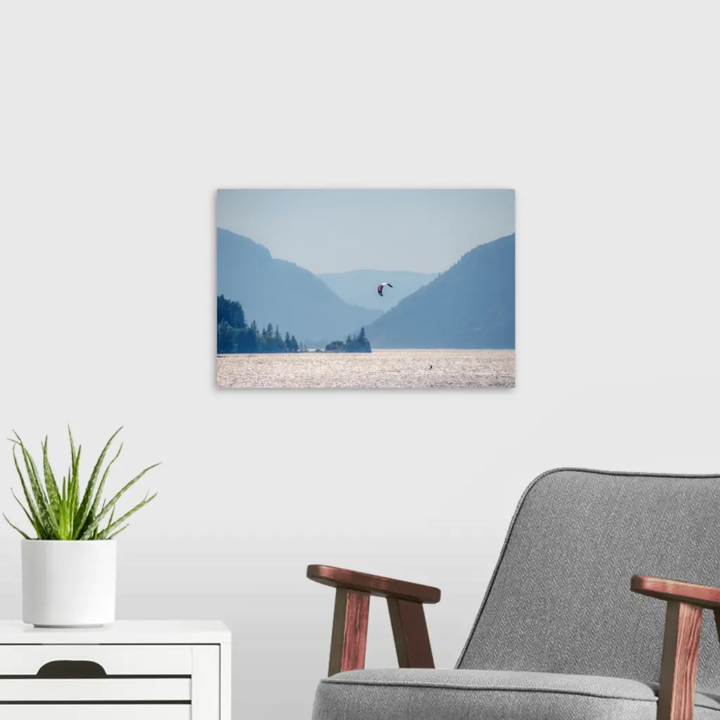 View of a kitesurfer on Columbia River in Portland, Oregon.