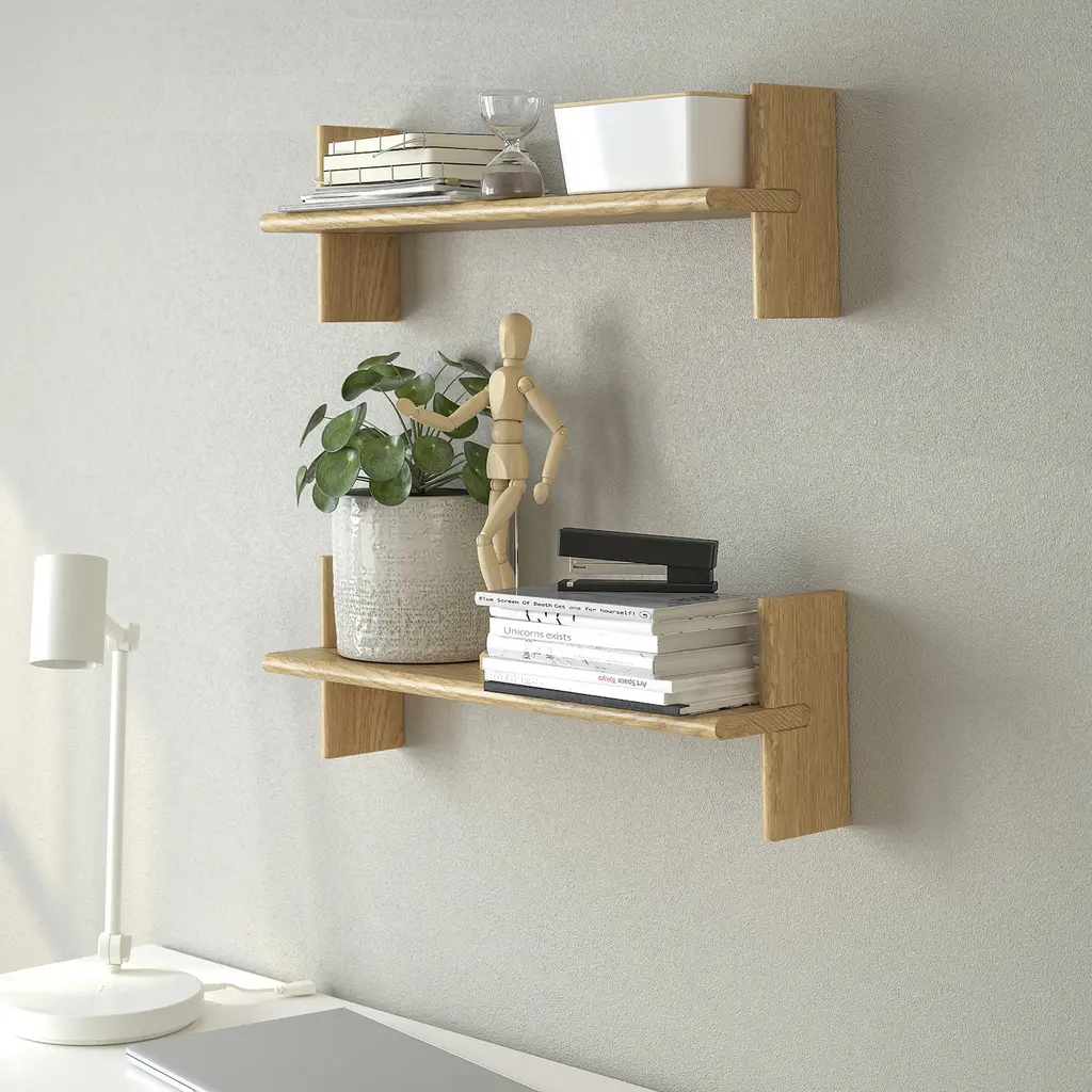 KLAVRESTRÖM Wall shelf - oak 23 5/8x7 7/8 ". Made of solid oak using leftover pieces from the production of other products. In this way, less material is wasted. The wall shelf makes it easy for you to see and reach the things you use every day.