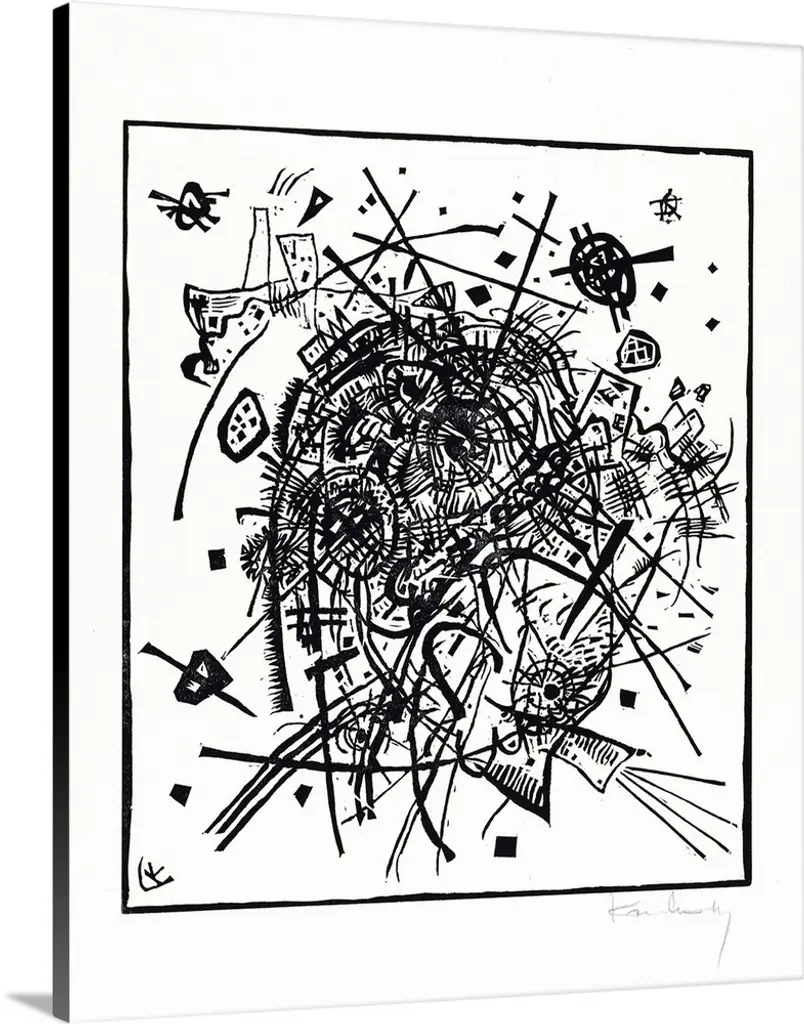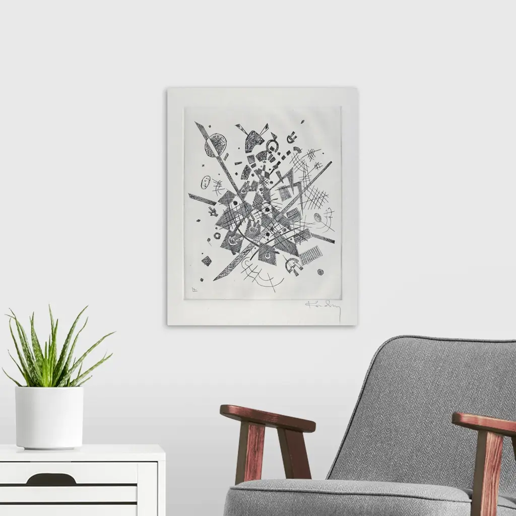 Kandinsky made the Small Worlds (Kleine Welten) portfolio while teaching at the Bauhaus, the influential German art school founded after World War I. For Kandinsky, abstraction was a spiritual language. In these poetic images, he creates a vibrant interplay of line and form, while capitalizing on the strengths of each printmaking method, in order to evoke different sensations or worlds. He used three techniques-drypoint, woodcut, and lithography-each of which had distinct, and for Kandinsky, symbolic, properties. Drypoint, which he regarded as aristocratic, creates sharp, precise lines, while woodcuts produce a richer texture and depth. Contrasting with these traditional techniques is lithography, which the artist viewed as modern and democratic because it offered a smooth surface, a rich vocabulary of colors and marks, and the opportunity to create a seemingly endless number of impressions.