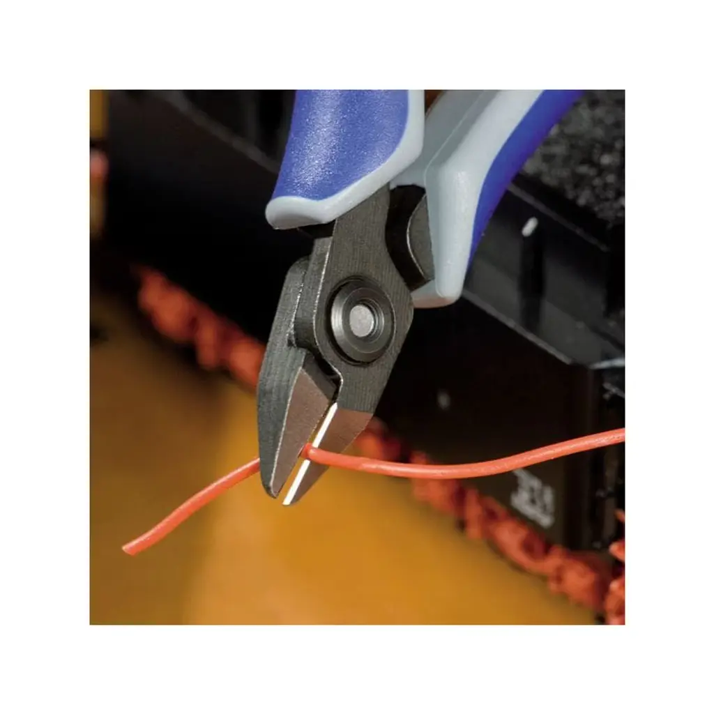 High Leverage Diagonal Cutting Plier, Plier Type Precision Diagonal Cutting Pliers, Cut Profile Standard, ESD-Safe Yes, Insulated No, Non-Sparking No, Head Offset Angle 0 Degrees , Overall Length 5 in, Jaw Length 1 in, Jaw Width 1/2 in, Jaw Opening Type Spring Return, Maximum Wire Cutting Diameter 1.5 mm, Voltage Rating Not Rated, Tether Ready Yes, Cutter Length 1/2 in, Cutter Location Side