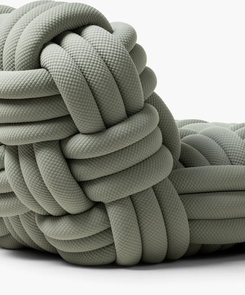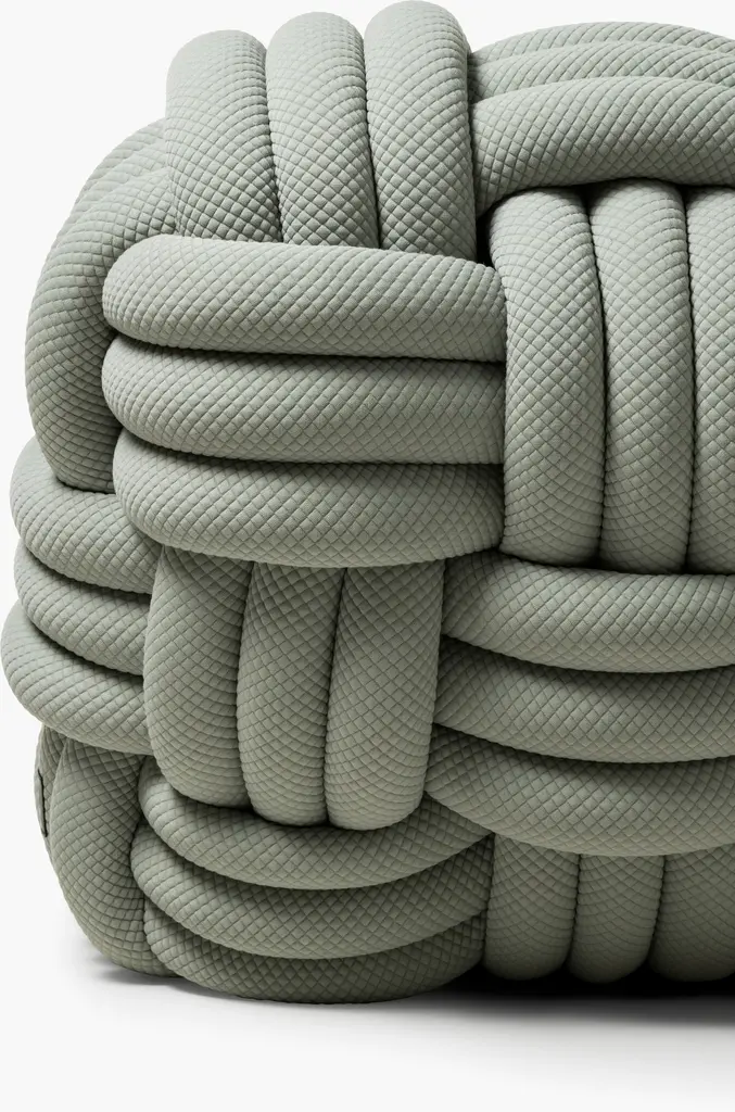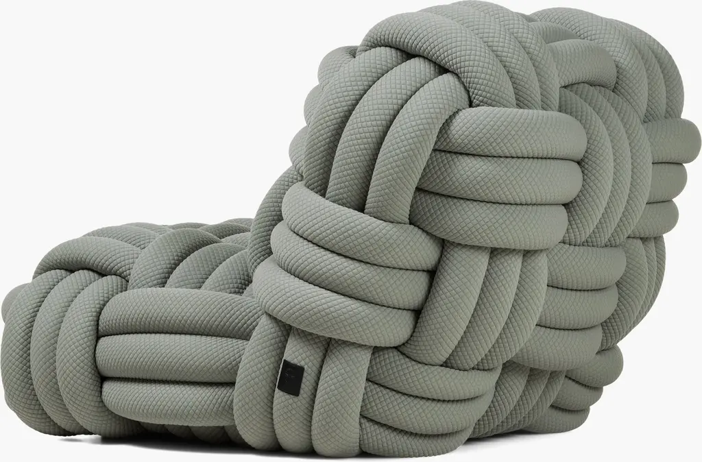 A playful way to unwind, the Knitty Chair (2023) invites relaxation and conversation with its chunky basketweave and unique form. Designed by Nika Zupanc, this texturally rich lounge chair is woven from soft, fabric-covered foam tubes that resemble the ropes used on ships. A welcoming combination of scale and softness will quickly make Knitty the favorite seat in the house. Made in the Netherlands.