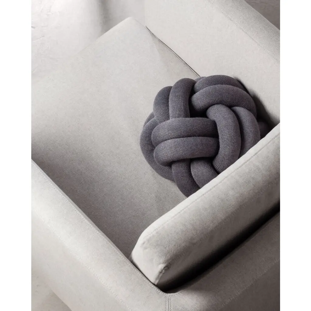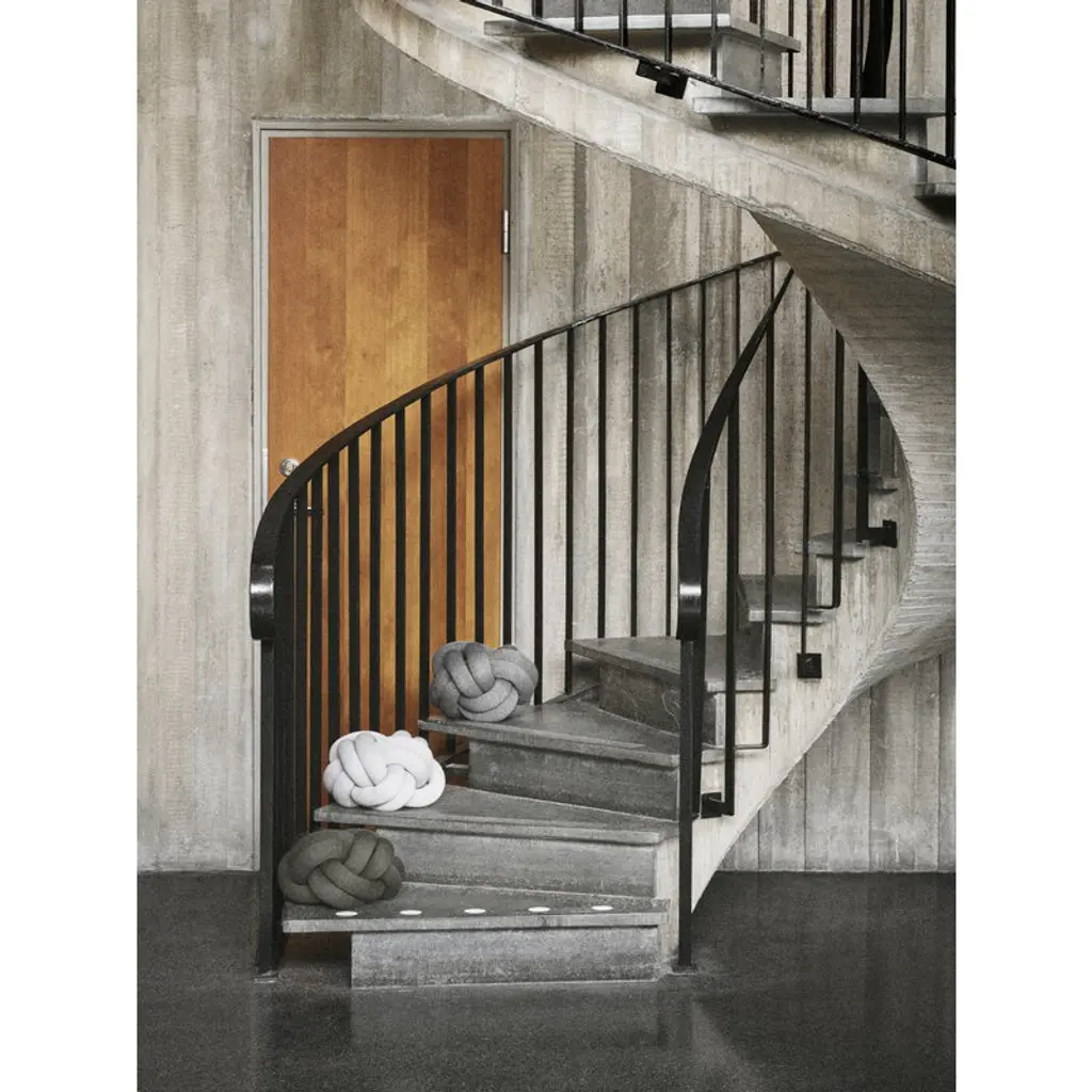 Design House Stockholm’s lovely Knot cushion was designed by Ragnheiður Ösp Sigurðardóttir in 2011. The Icelandic designer was looking for a more efficient way to manufacture the long legs of her crocheted teddy bears and started experimenting with machine-made knits. She ended up with a collection of knot-like cushions called Notknot, and Design House Stockholm launched one of the designs in 2016 under the name Knot. Made of a stuffed wool tube, Knot questions traditional cushions and cheers up any sofa, bed and lounge chair.
