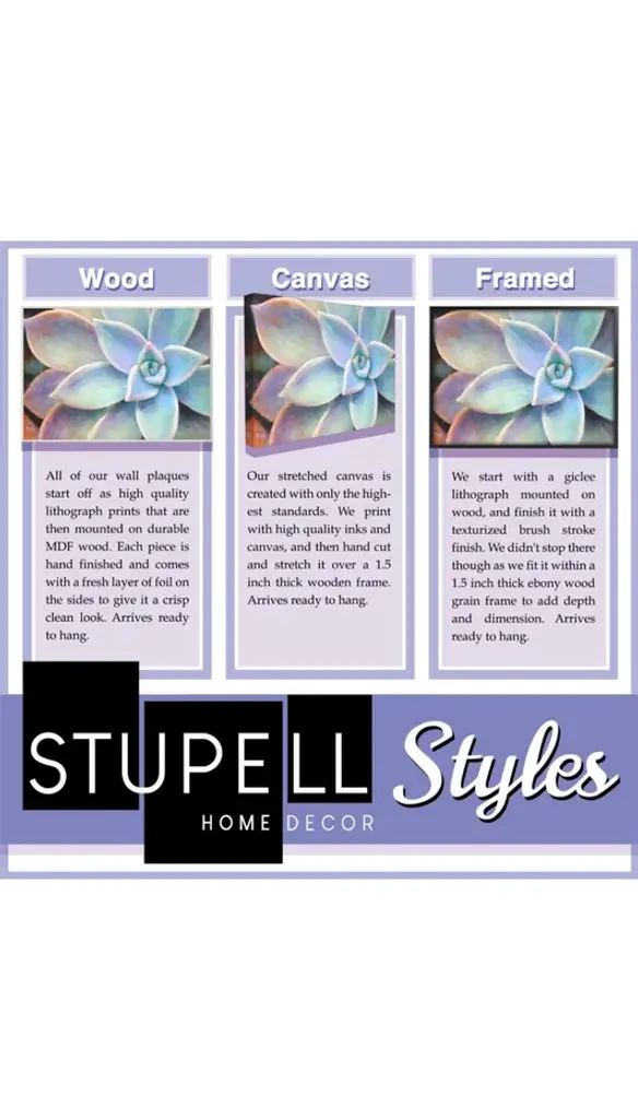 Proudly made in the USA, our stretched canvas is created with only the highest standards. We print with high quality inks and canvas, and then hand cut and stretch it over a 1.5 inch thick wooden frame. The art comes ready to hang with no installation required.