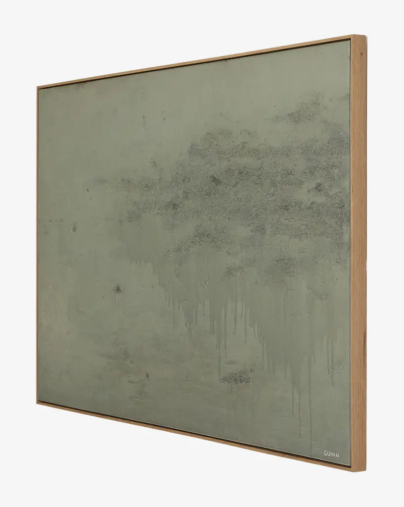 With its textural depth and serene presence, Tyler Guinn's Knowledge of The Stream enhances the atmosphere of any room with its thoughtful abstract design. The vertical grain white oak floater frame brings a natural elegance that beautifully complements the composition's contemporary aesthetic.