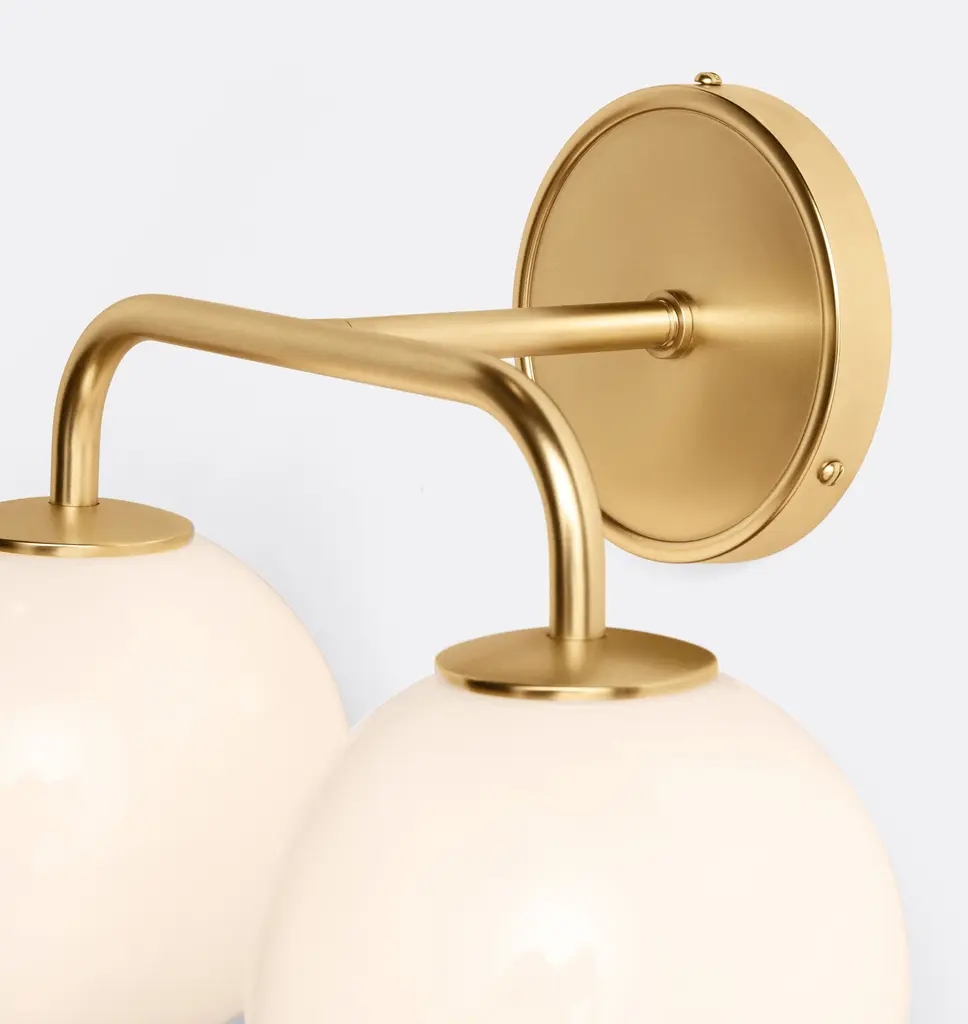 Inspired by Mid-Century designs, our Knowles Double-Sconce adds timeless style and a beautiful source of light to your home. Featuring an elegant glass globe shade and a circular backplate with stepped detailing, Knowles is crafted from solid brass—a timeless choice for your bathroom, bedroom, entryway, or living room.