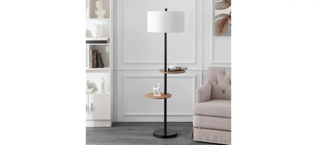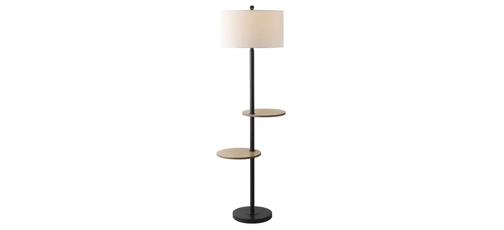 A fashion smart blend of form and function, this Ko Lighten Floor Lamp is just as stylish in the traditional living room as it is in the urban chic bedroom. Kelsen's matte black finish pairs beautifully with its two circular wood shelves, artfully arranged to provide a sense of depth and movement to any interior.