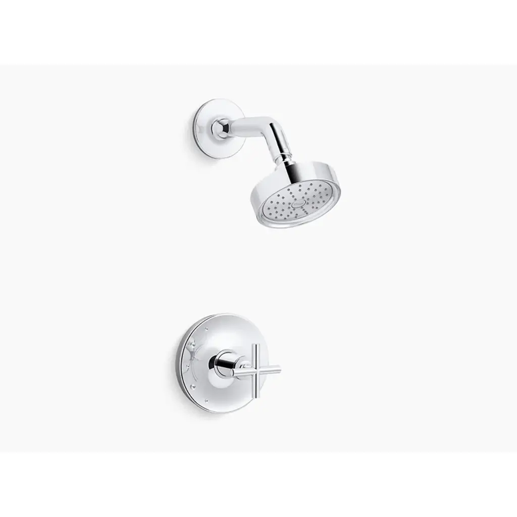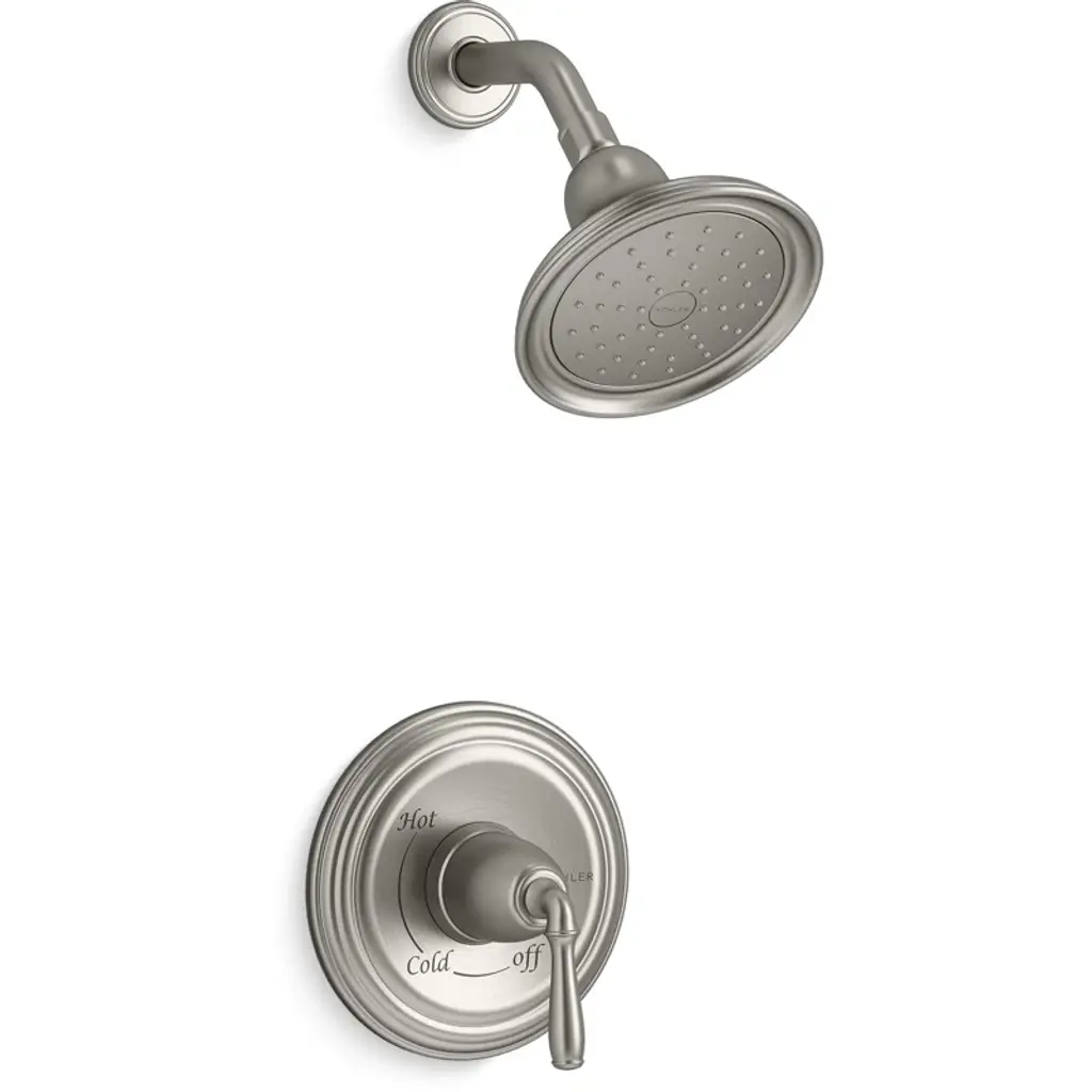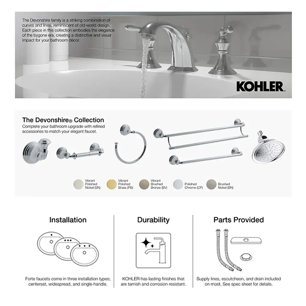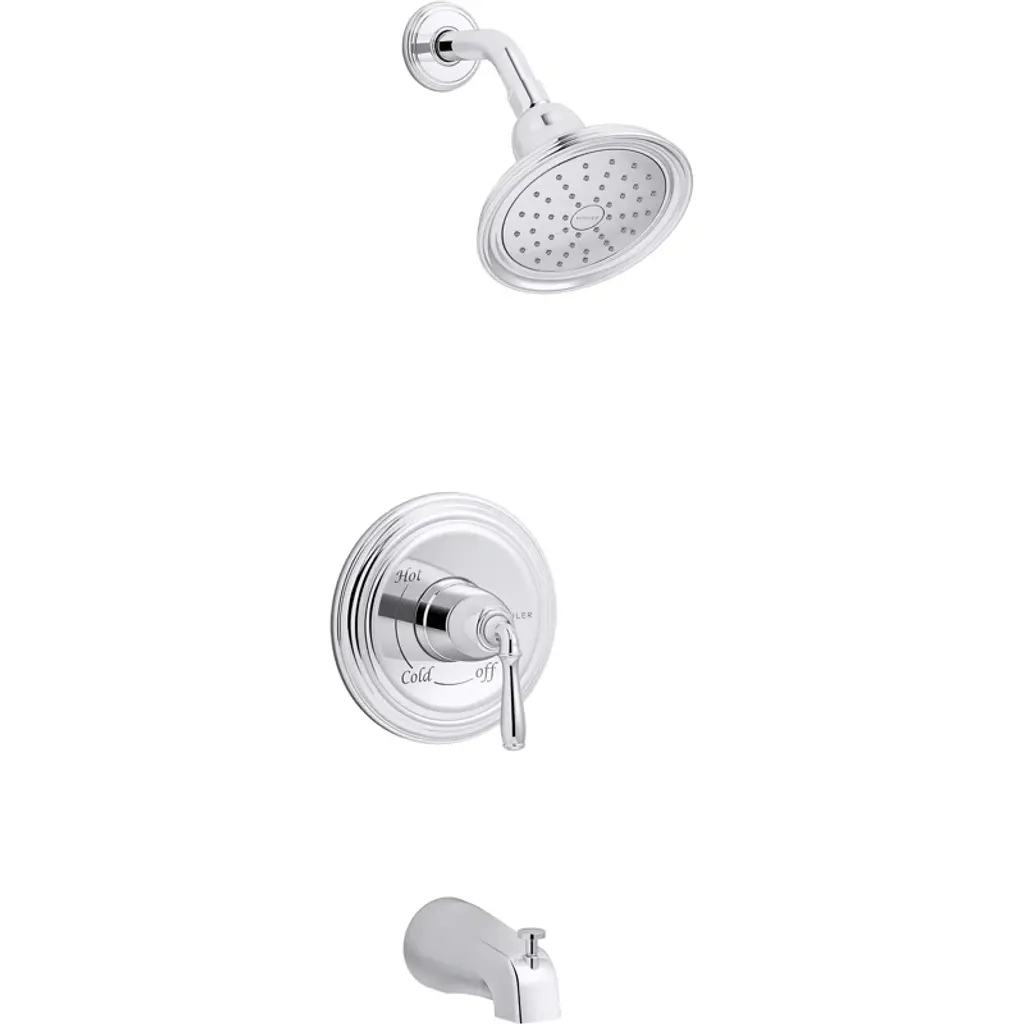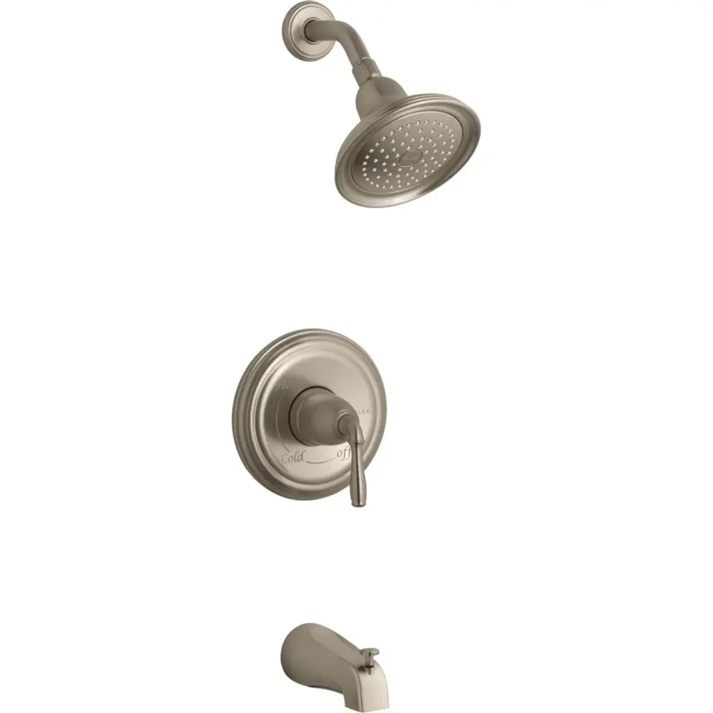 Designed to capture the essence of a bygone era, Devonshire faucets and accessories bring a versatile, traditional style to the bathroom. This Kohler Devonshire Rite-Temp Bath and Shower Trim Set with Slip-Fit Spout, Valve Not Included bath and shower valve trim features a metal lever handle, bath spout, and shower arm with flange. Pair this trim with a Rite-Temp pressure-balancing valve, which maintains your desired water temperature during pressure fluctuations.