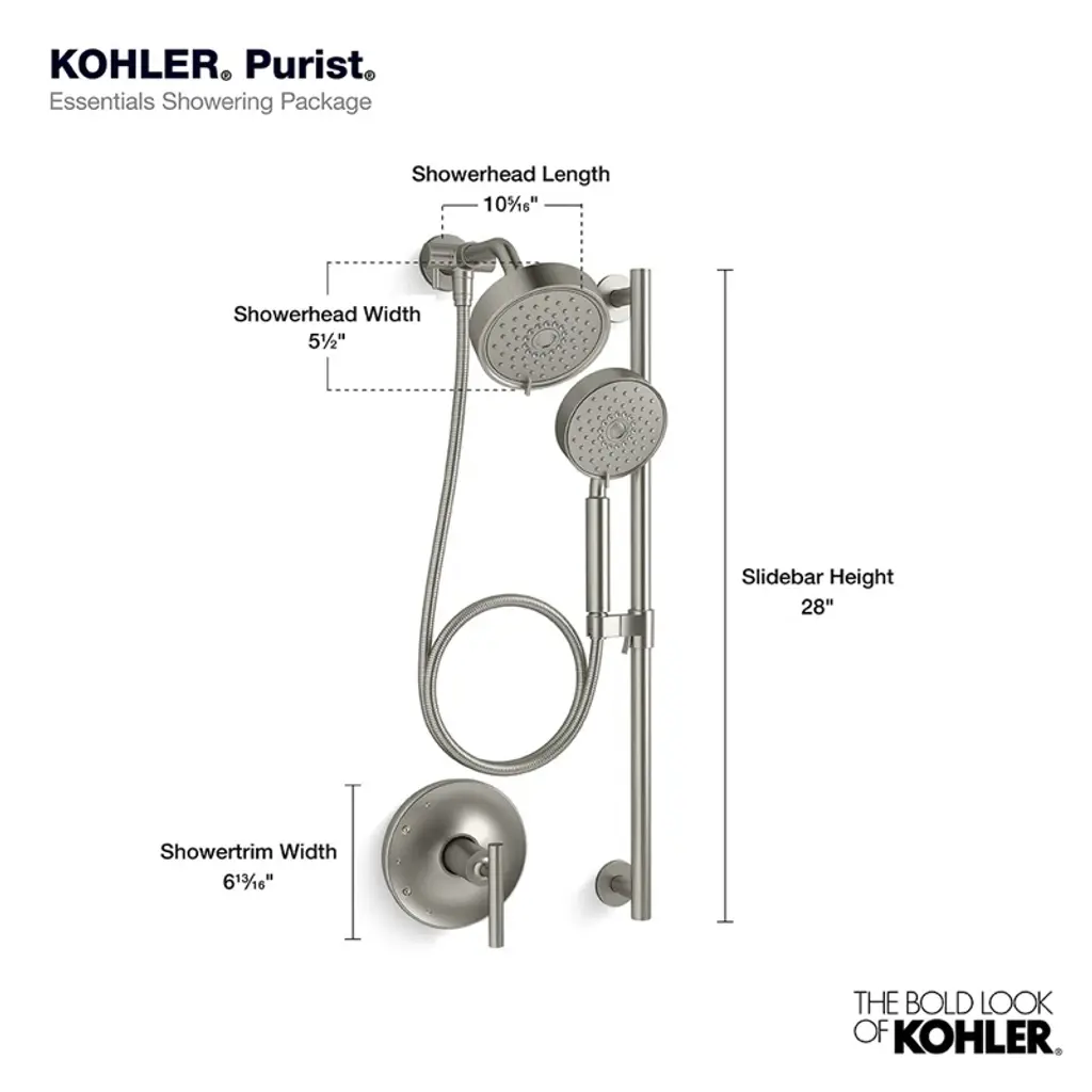 Kohler Purist Performance Showering Kit, 2.5 Gpm Multifunction Showerhead And Handshower Package, Three Spray Settings