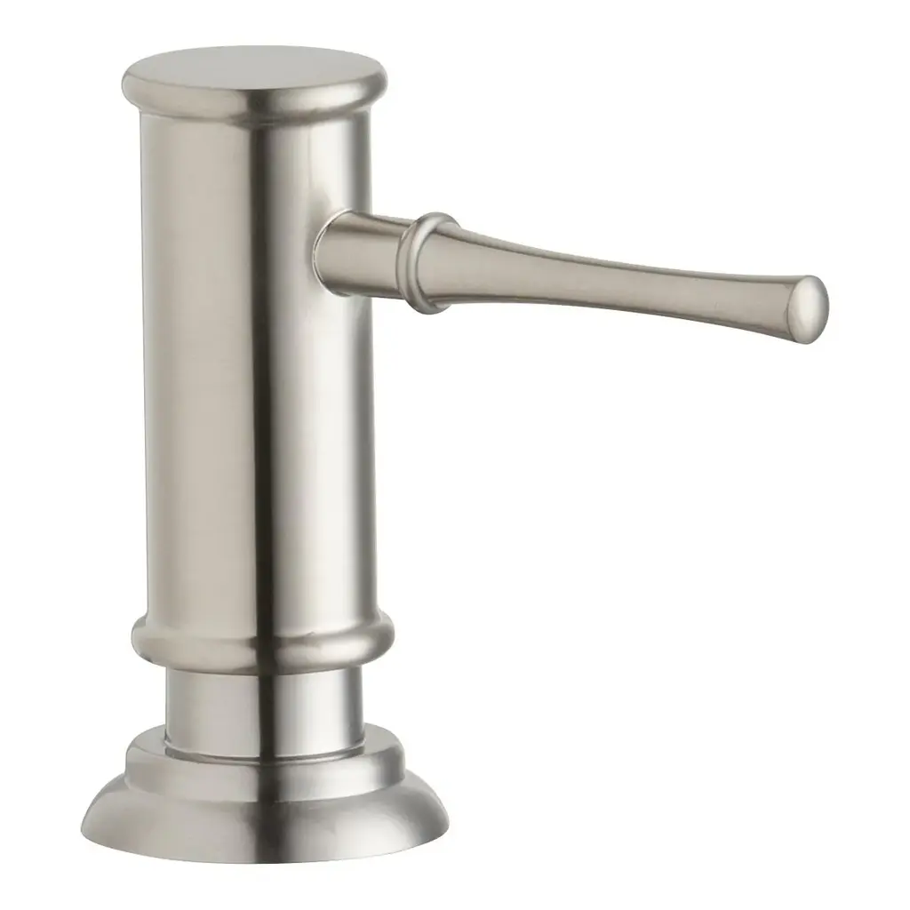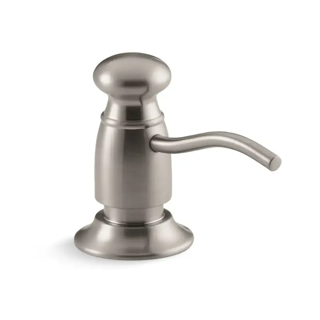 Fill this dispenser with your favorite liquid soap or hand lotion. Its traditional curves lend elegance to your kitchen sink while keeping your countertop tidy. Available in a range of finishes to complement your kitchen decorFeatures:Holds up to 16 ounces of soap or lotion; refillable from topSolid-brass constructionClamshell packedCoordinates with traditional-style faucetsBrass construction1 year Limited ManufacturerDimensions: 3.44 in. long x 2 in. wide x 3.44 in. highYes