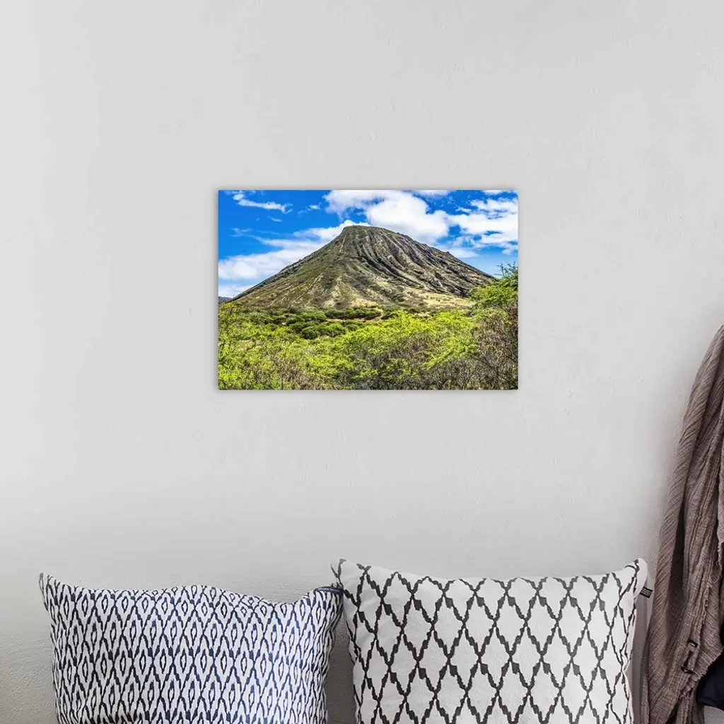 Koko Crater, Honolulu, Oahu, Hawaii. Hiking trail over railroad tracks to summit.