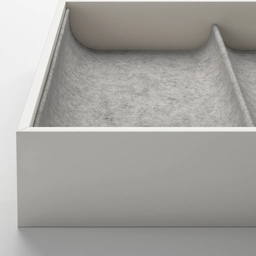 KOMPLEMENT Pull-out tray with insert - white 29 1/2x22 7/8 ". The insert helps you store and organize your sunglasses, watches and other accessories. Soft felt protects your accessories and keeps them neatly in place. You can easily see and reach your things since the tray pulls out.