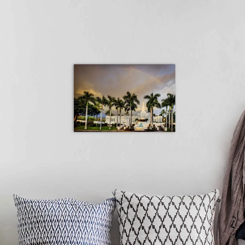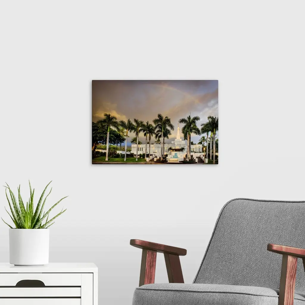 Kona Hawaii Temple, Rainbow Over The Palms, Kailua, Hawaii