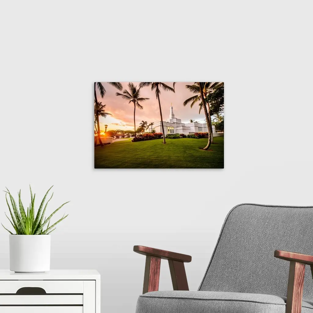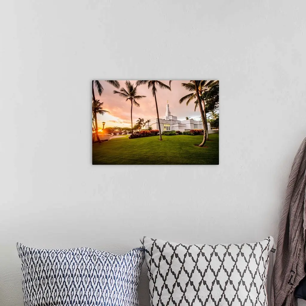 Kona Hawaii Temple, Rear View With Palm Trees, Kailua, Hawaii