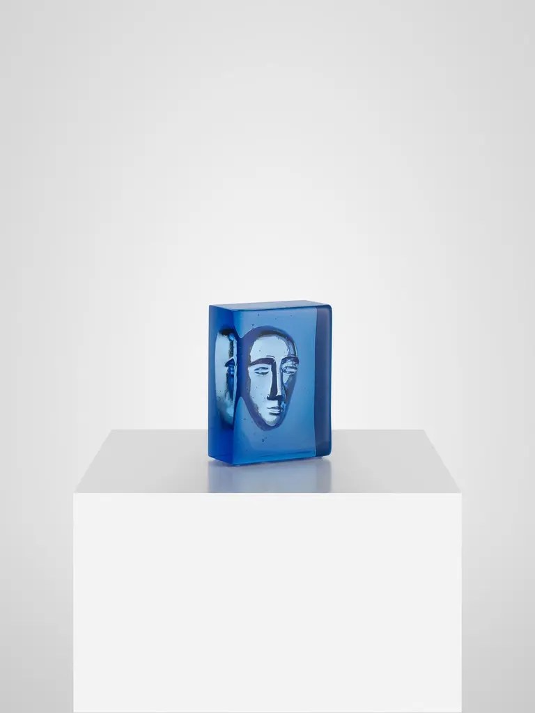 The renowned Swedish glass artist Bertil Vallien has created Azur Man. It is an exclusive art object in blue glass, cast in a charcoal mold, with an imprint of a face. The face is a recurring Bertil Vallien motif – one of his signatures, often seen in his magnificent boats of glass. The object is handmade at Kosta Glassworks in Sweden, in a limited edition of 1000 pieces, and is part of the Kosta Boda Artist Collection.