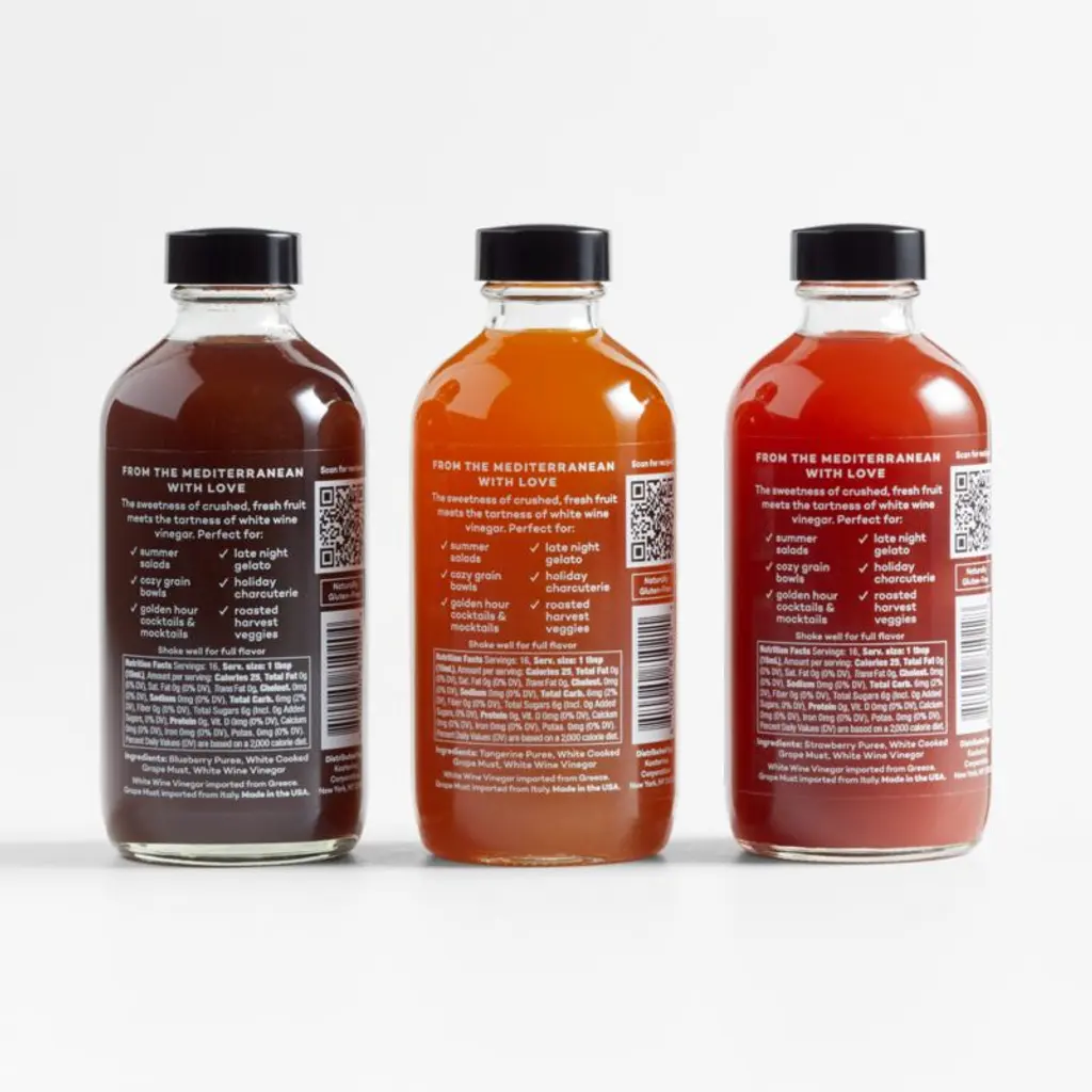 Make fresh fruit, salad dressings and even cocktails extra special with this trio of fruit-flavored vinegars from Kosterina. Infused with the delicious taste of strawberry, tangerine and blueberry, the dressings are made of only three ingredientswhite wine vinegar from Greece, grape must from Italy and crushed fruit. Pair the tangy and sweet vinegar set with a bottle of Kosternina olive oil (sold separately) and one of our salad bowls for a gourmet-minded gift.