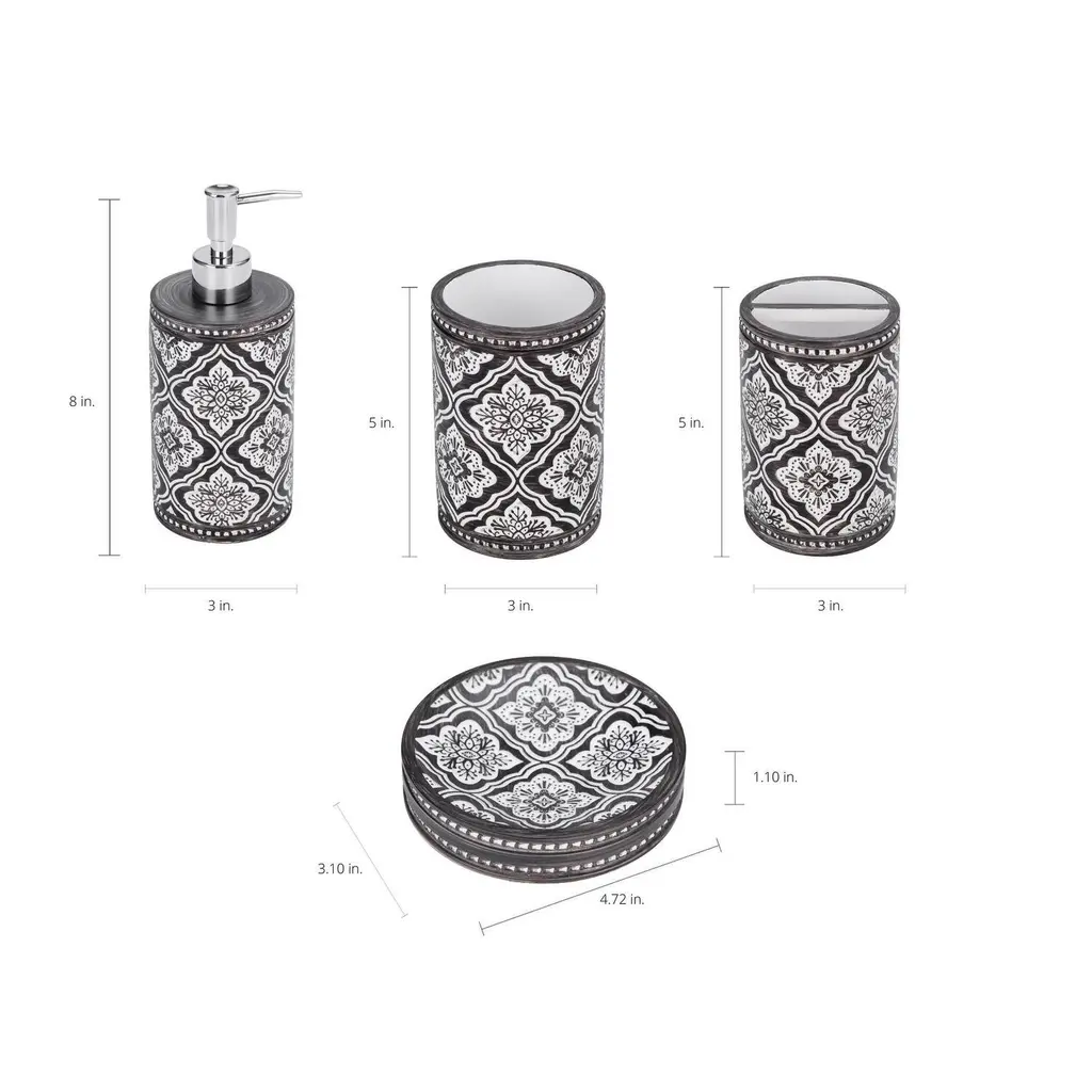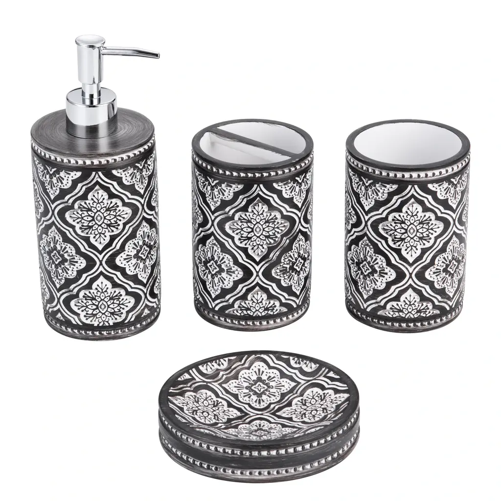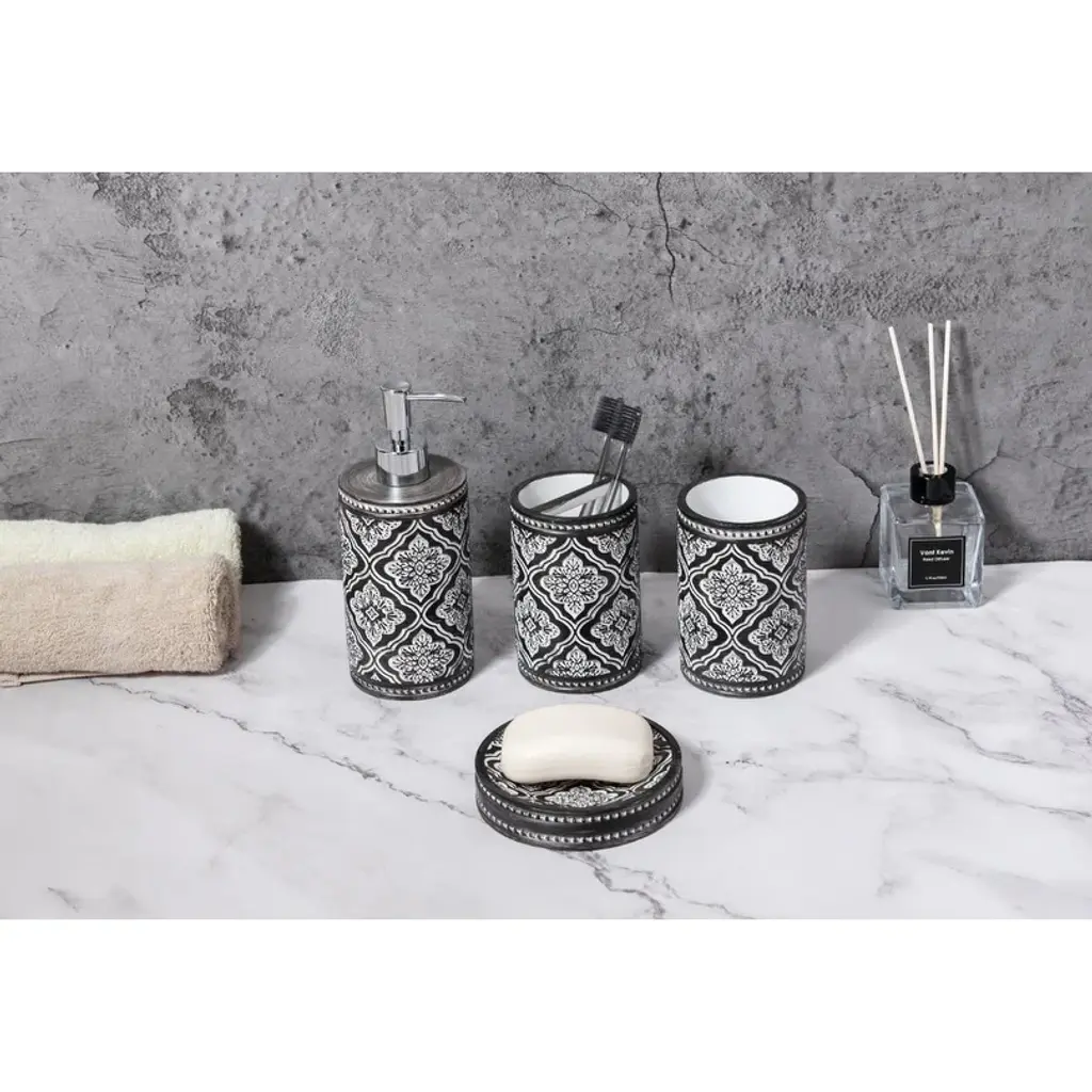Kralix 4Pc Arabesque Resin Bath Accessory Set - White