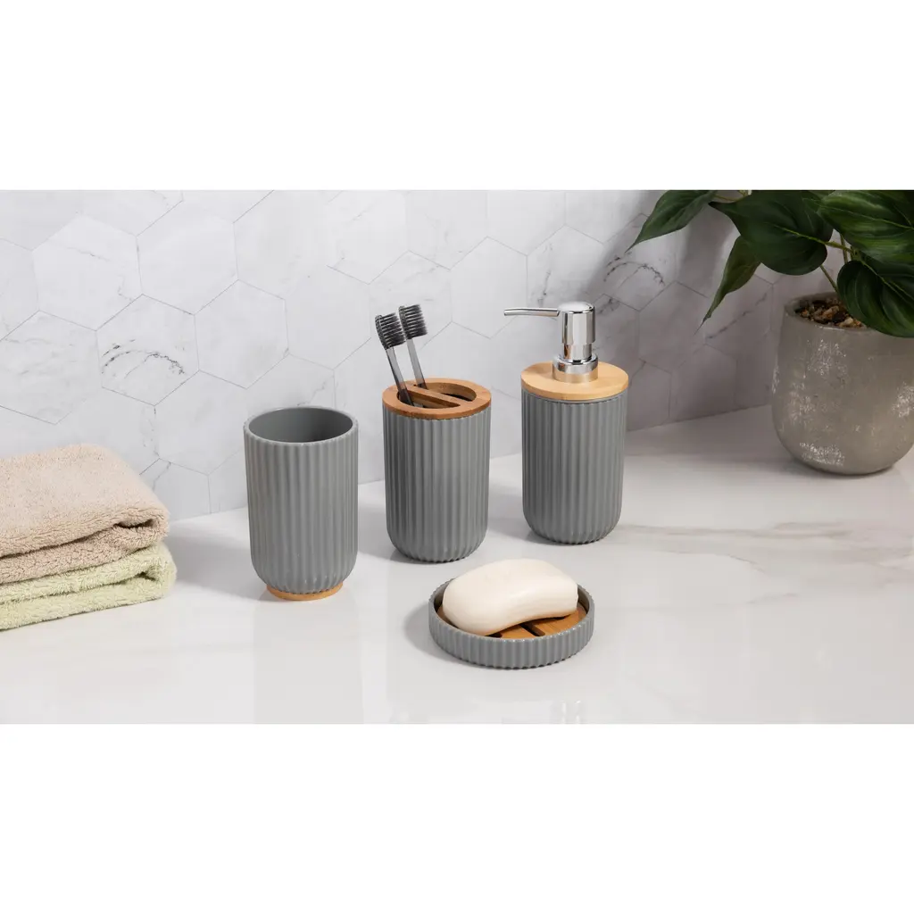 Kralix 4Pc Ribbeds Bath Accessory Set - Gray