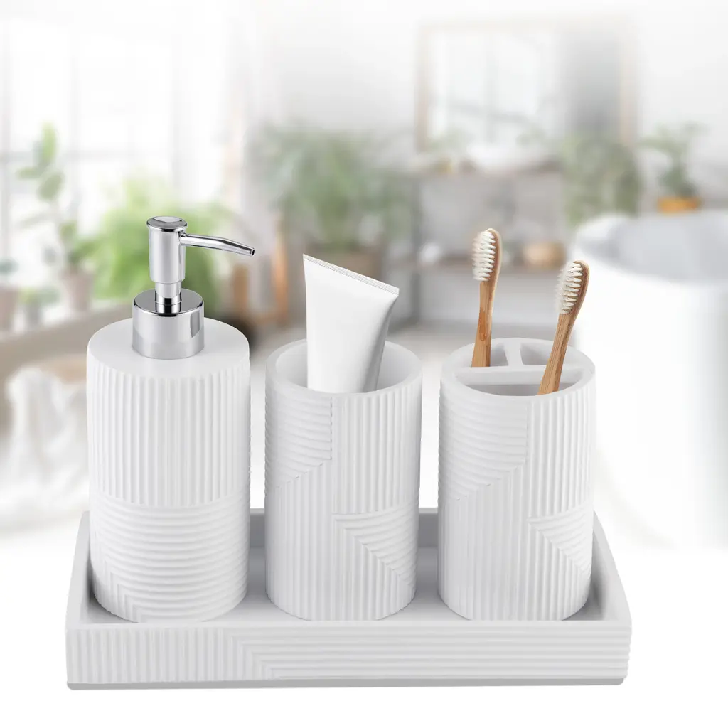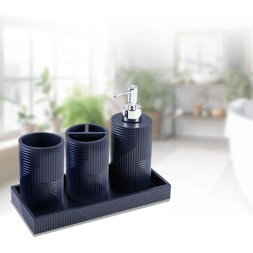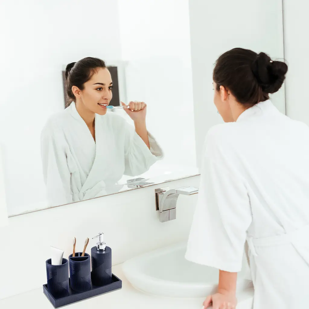 Kralix 4 Piece Blue Bathroom Accessories Set, Modern Blue Bathroom Soap Dispenser Set, Toothbrush Holder Set, Tumbler and Vanity Tray, Blue Bathroom Accessory Set, Accesorios para Baño Azul.BLUE BATHROOM ACCESSORIES SET - this modern bathroom accessories set is very stylish and will upgrade your bathroom instantly. This bathroom accessories sets complete is beautiful.BATHROOM DECOR SETS ACCESSORIES - this 4 piece bathroom set comes with a blue soap dispenser and blue toothbrush holder set, blue tumbler and vanity tray. Made from premium resin.NAVY BLUE BATHROOM ACCESSORIES SETS COMPLETE - there is nothing else out there like this beautiful bathroom accessories set. Juego de baño completo azul, set de baño perfecto para la casa.SOAP DISPENSER BATHROOM SET - very well designed bathroom sink decor so that you can compliment your bathroom with this bathroom accessory set and vanity set.GREAT GIFT IDEA - this sturdy and durable bathroom sets accessories comes neatly packaged for safe shipping. Perfect gift for any occasion for family, friends, housewarming, wedding or colleagues.
