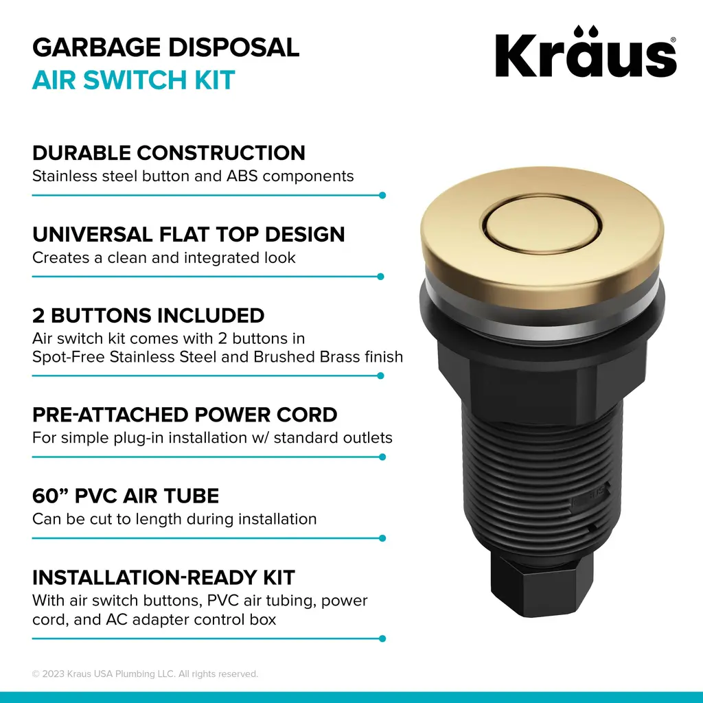 Kraus Garbage Disposal Air Switch - Kwda-200 (2 Buttons, Adapter, Cord, Tube) 1 7/8"d - Bb - Brushed Brass