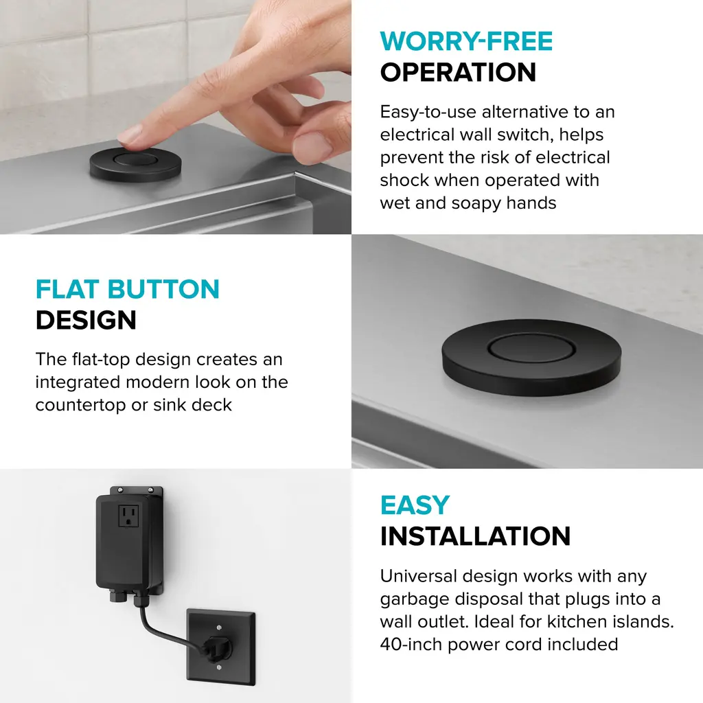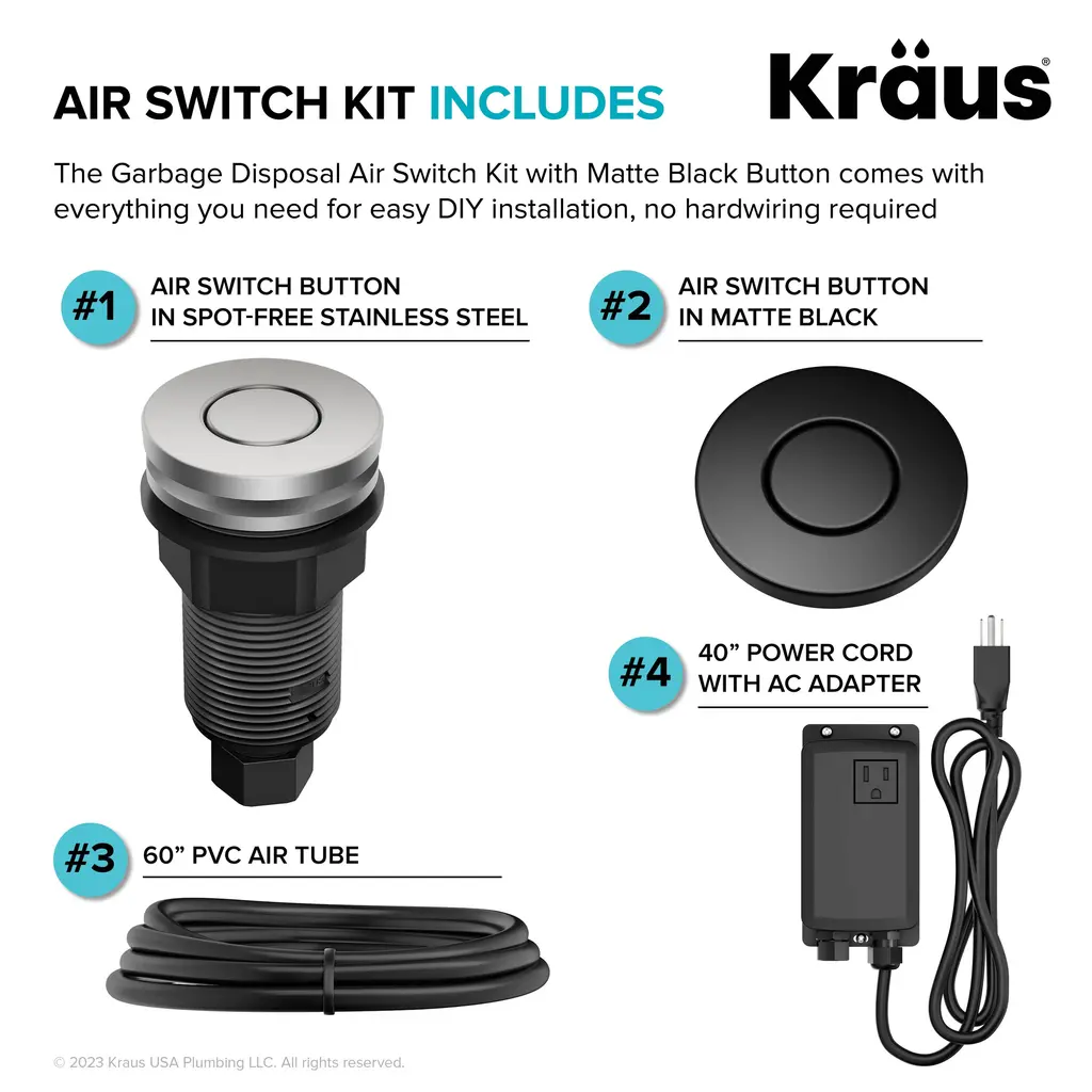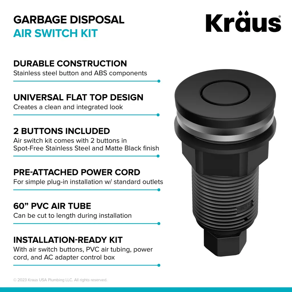 Kraus Garbage Disposal Air Switch - Kwda-200 (2 Buttons, Adapter, Cord, Tube) 1 7/8"d - Mb - Matte Black