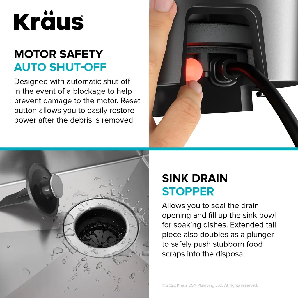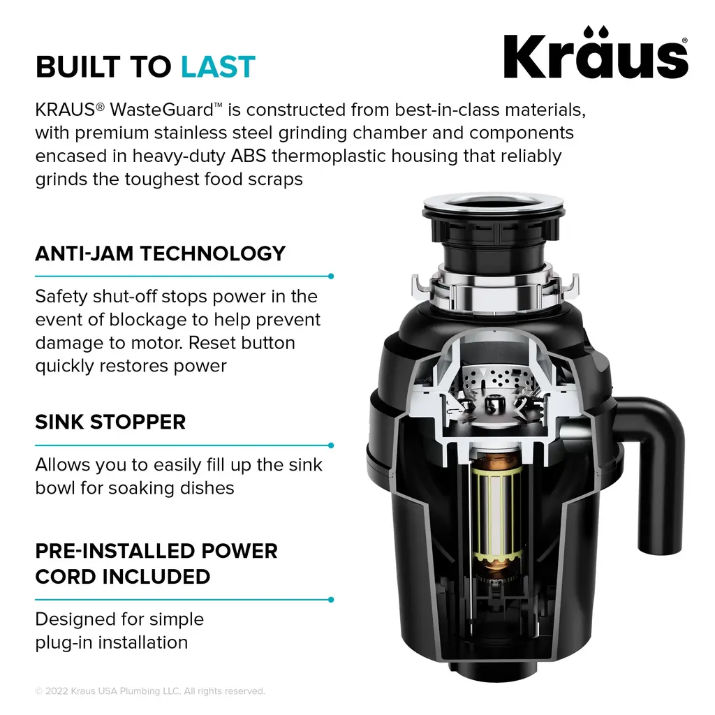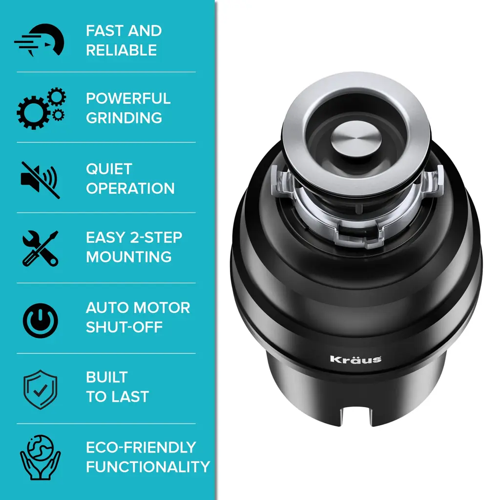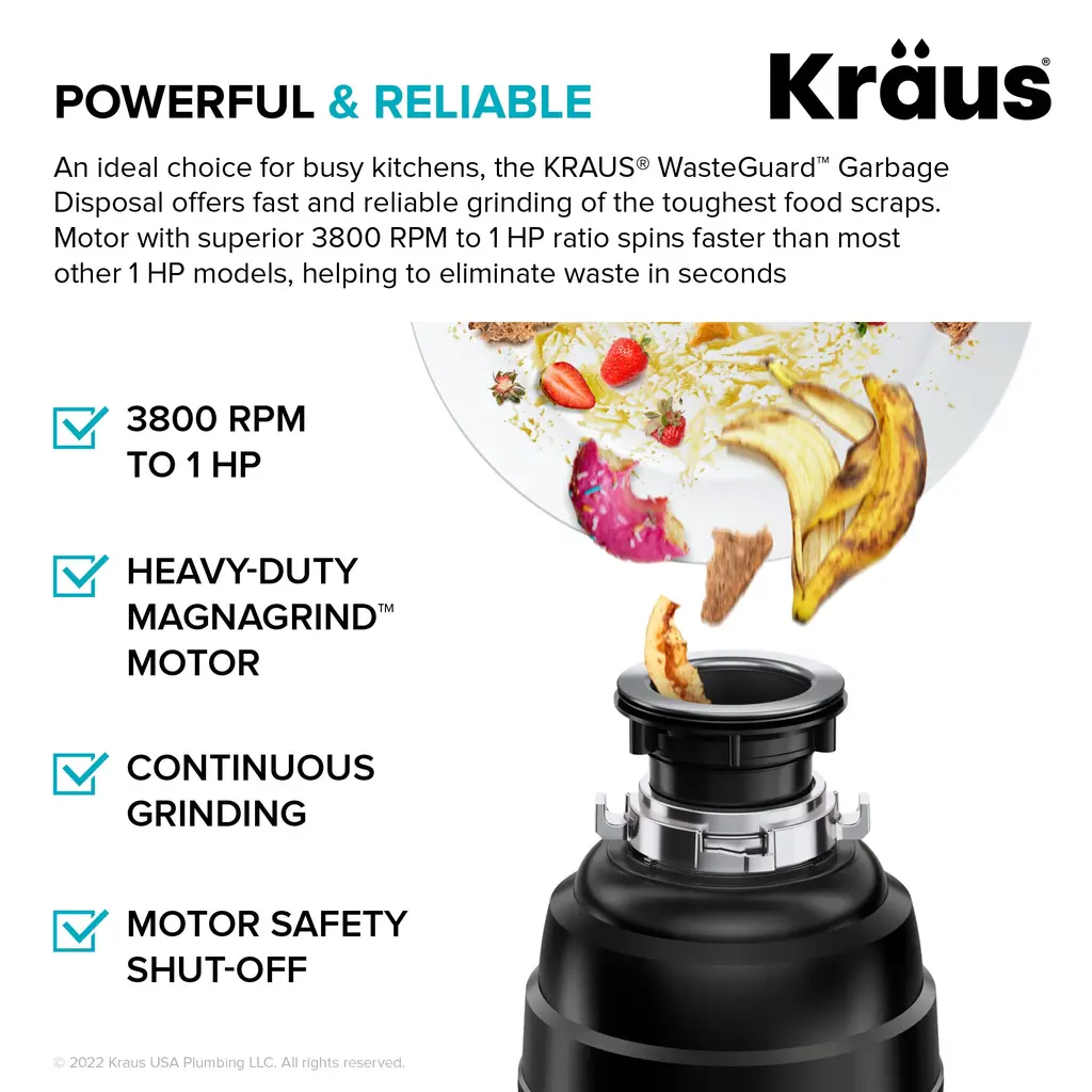 Kraus Kwd100-100 Wasteguard 1 Hp Continuous Feed Garbage Disposal With - Black