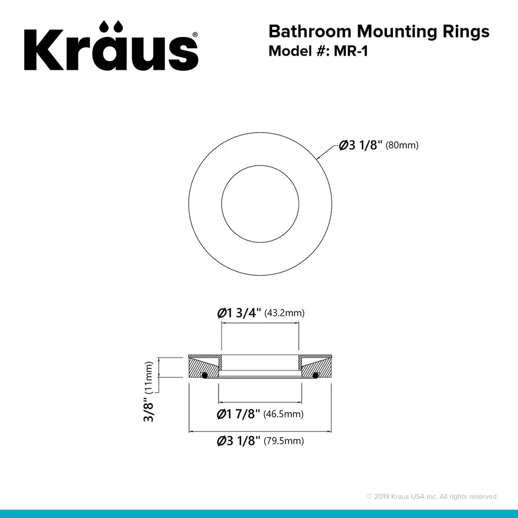 With clean lines and sturdy construction, Kraus bathroom accessories provide everyday efficiency with style. The metal mounting ring is designed to work with any vessel sink with a rounded bottom. Choose from four distinctive finishes to create the perfect finishing touch for your bathroom.Benefits & FeaturesDimensions MR-1: