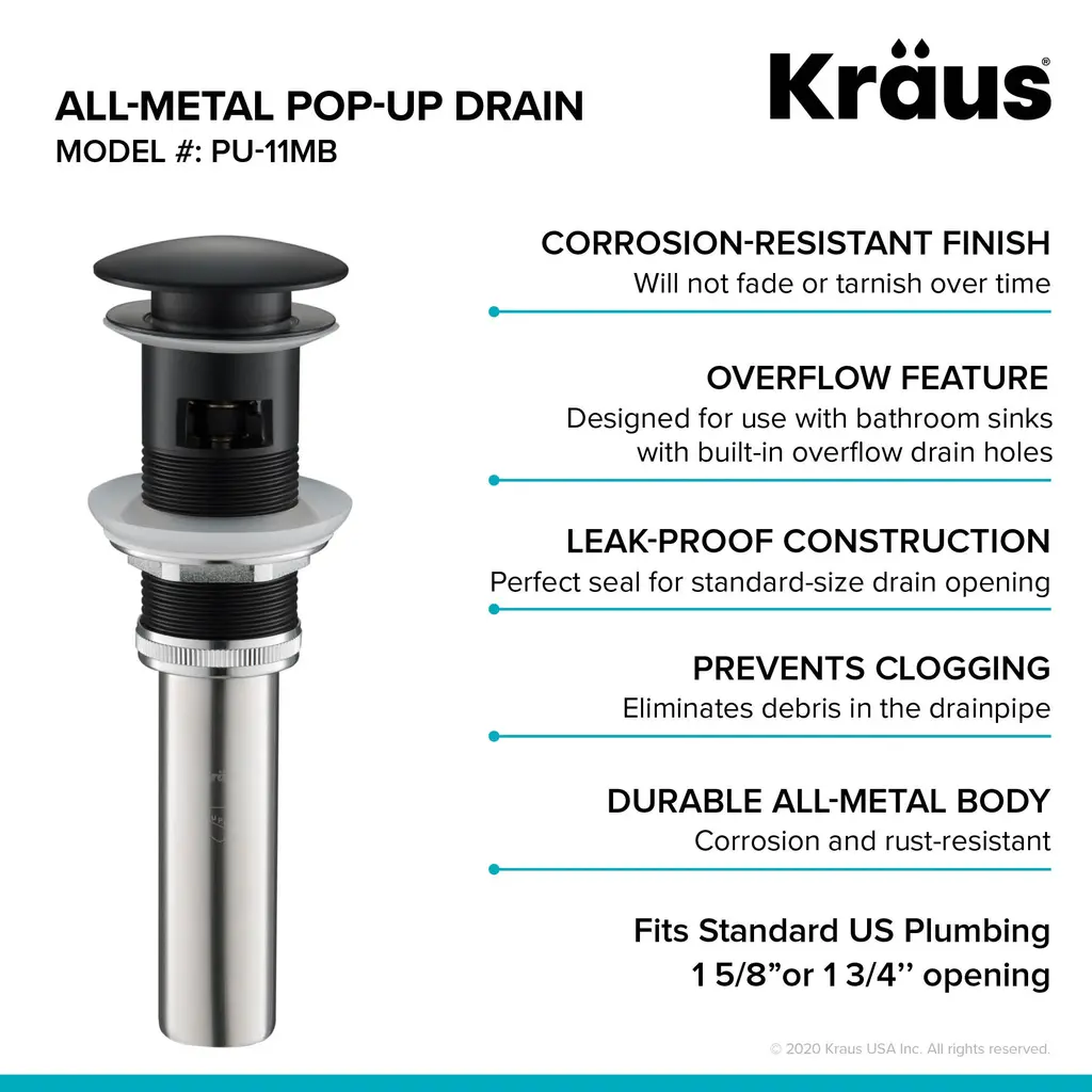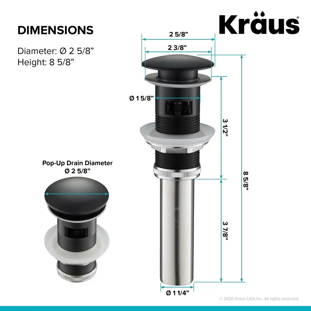 With clean lines and sturdy construction, Kraus bathroom accessories provide everyday efficiency with style. Constructed from brass, the pop-up drain is designed to work with any above-counter vessel sink with overflow. For easy installation, all required rubber gaskets are included. Choose from four distinctive finishes to match your bathroom faucet and create a beautifully coordinated look.