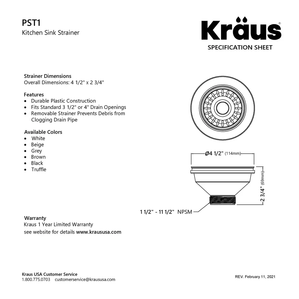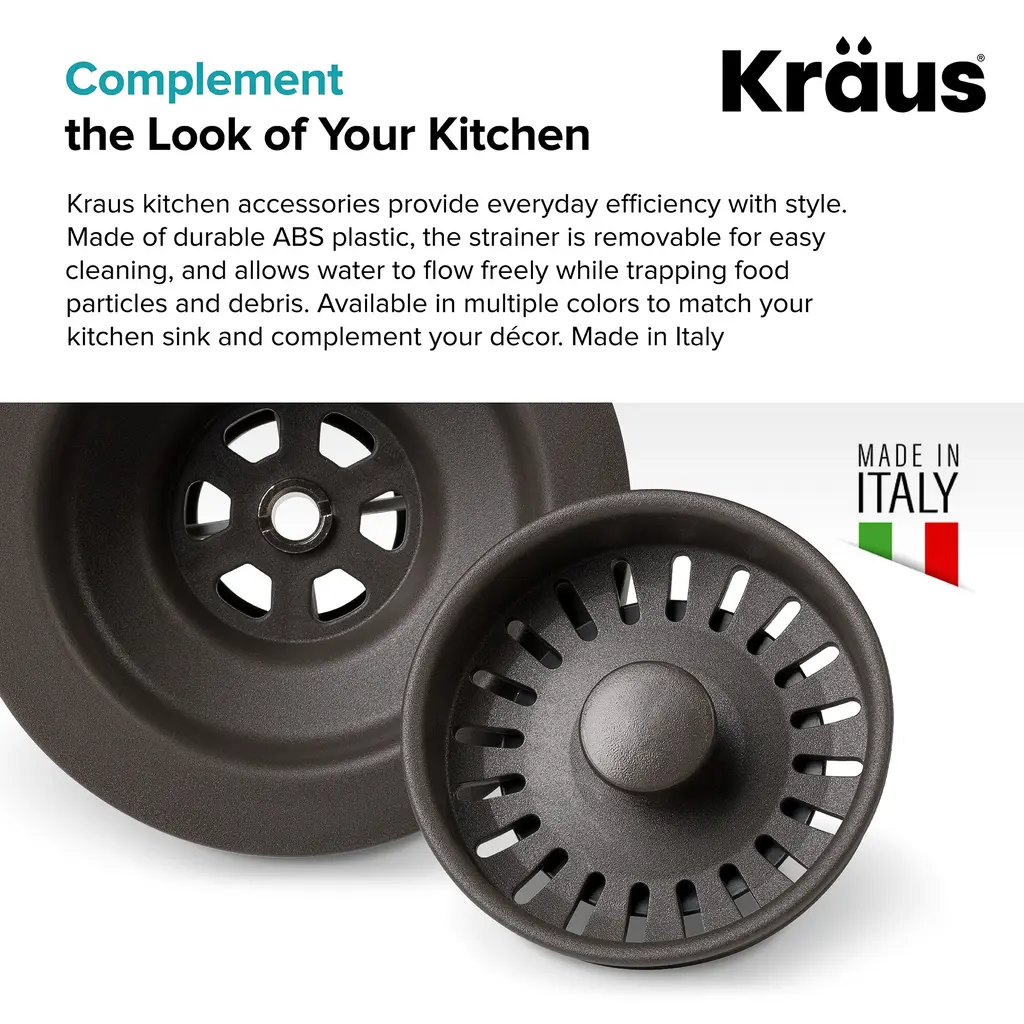 Kraus kitchen accessories provide everyday efficiency with style. Designed to keep your drainpipe clear, the Kraus color kitchen sink strainer is a perfect finishing touch for your sink. Made of durable ABS plastic, the strainer is removable for easy cleaning, and allows water to flow freely while trapping food particles and debris. Available in multiple colors to match your kitchen sink and complement your decor.