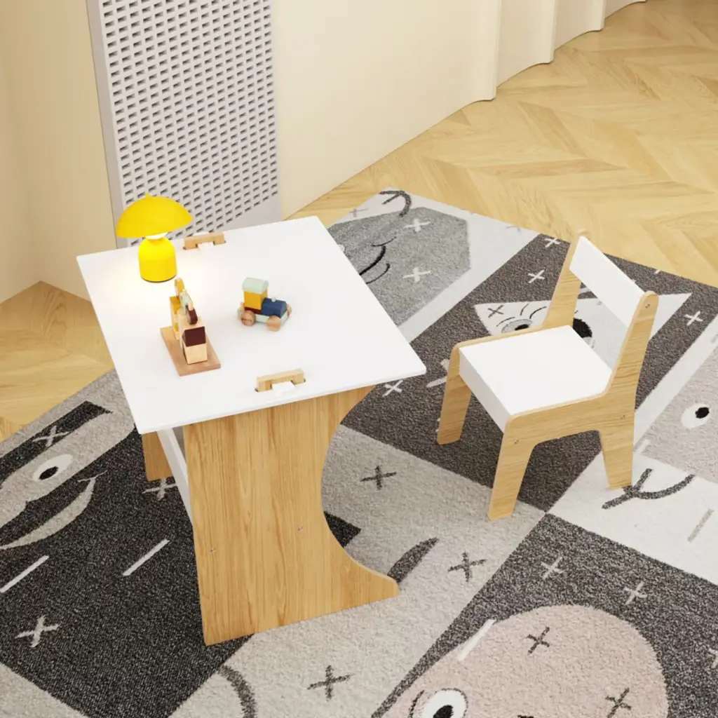 The desk features a reversible tabletop. Use it as a smooth - surfaced study desk or flip it to reveal a chalkboard for drawing, painting, and creative expression, maximizing utility for various activities.