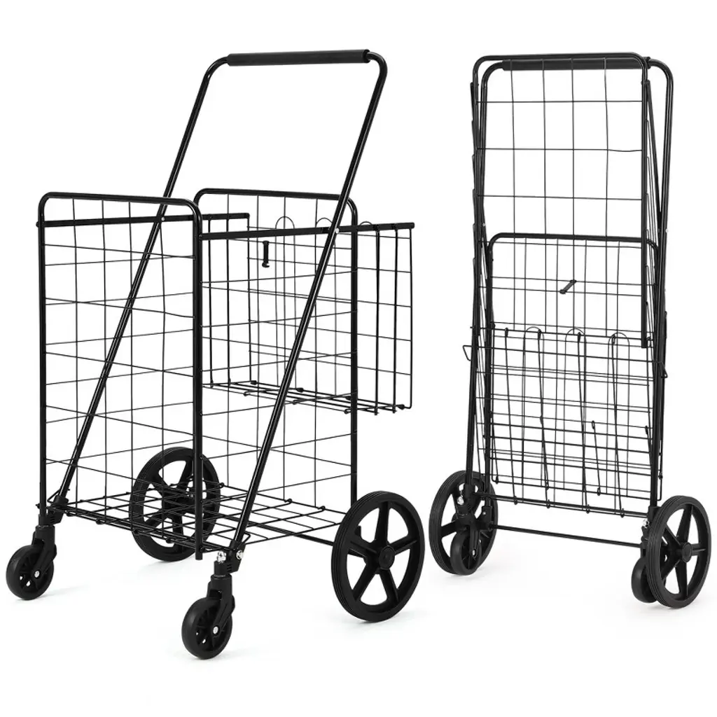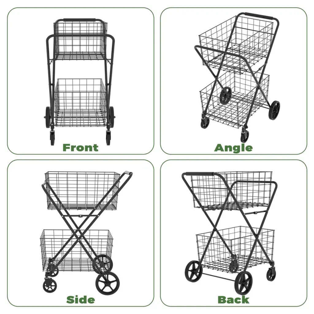 Totally new design with removable double large baskets, larger storage space than normal shopping cart. You can also use it store daily grocery in kitchen. Made of high quality stainless steel with black painted surface, our shopping cart has better performance in terms of rust resistance, corrosion resistance and scratch resistance.