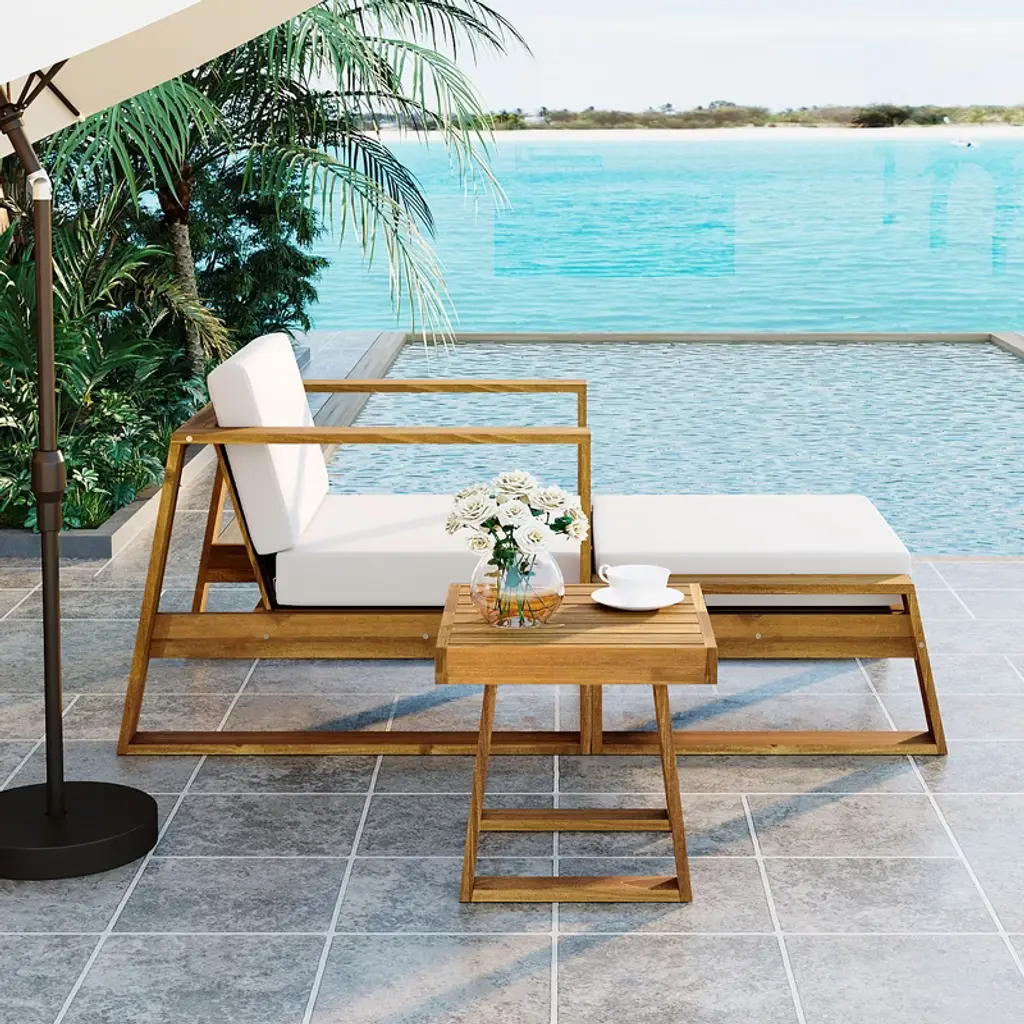 Ktmbdw 3-piece Patio Furniture Set, Chair With Adjustable Backrest And Removable Cushions, Ottoman & Table, Outdoor Garden Furniture Sets, Beige