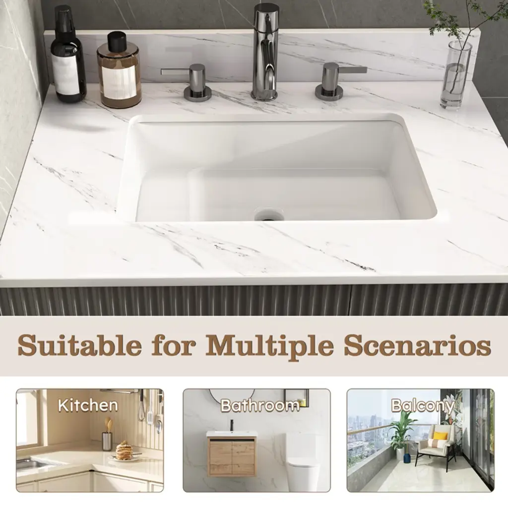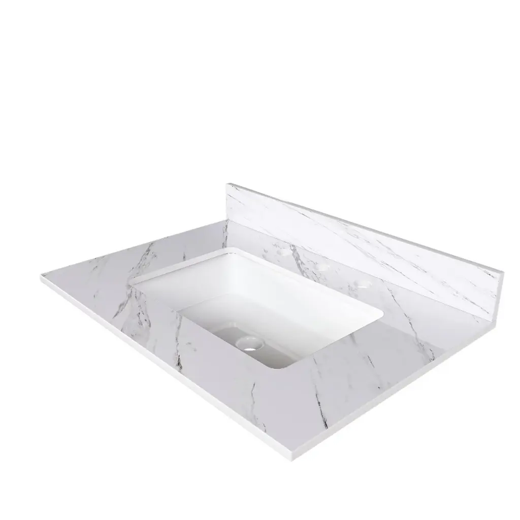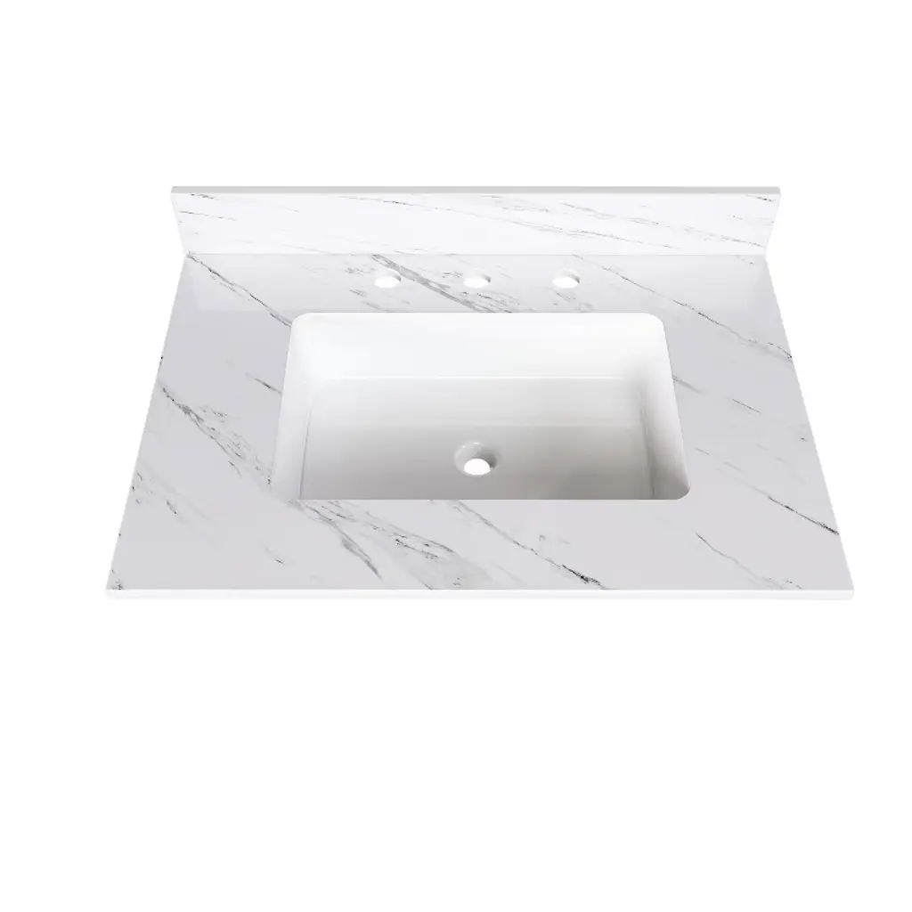 Ktmbdw 31'' Rectangular Bathroom Sink With Marble Vanity Top, 3 Predrilled Centerset And 4-inch Backsplash, Stain-resistant, Easy-to-clean- White