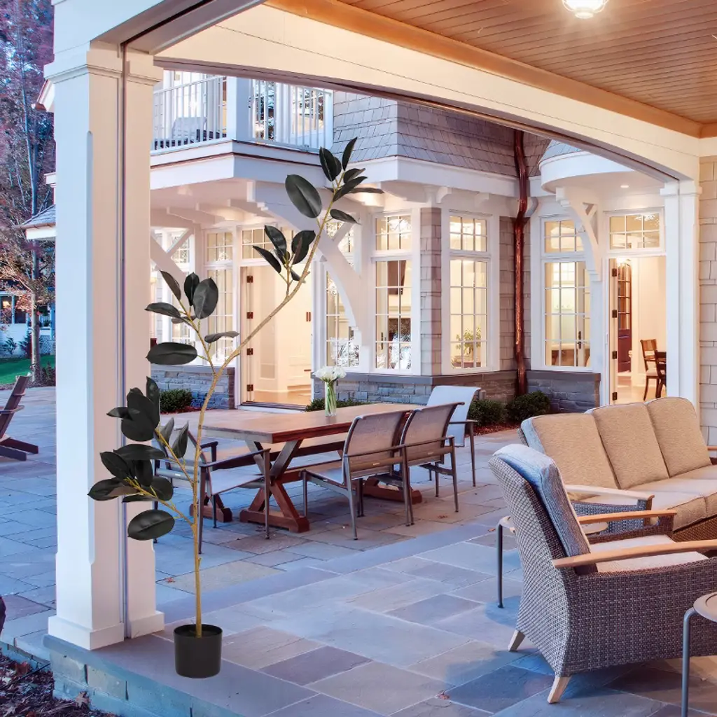 The staggered leaves for added visual appeal and realism and require minimal upkeep. They don't need watering, trimming, or fertilizing. The densely arranged leaves effectively conceals the inner framework of the topiary, ensuring a seamless and cohesive appearance.