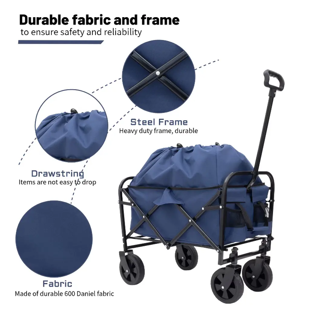 Ktmbdw Collapsible Foldable Wagon Cart Beach Wagon Heavy Duty Utility Cart Utility Wagon Grocery Cart For For Camping 3Pcs Liner Bag /Cover,dark Blue