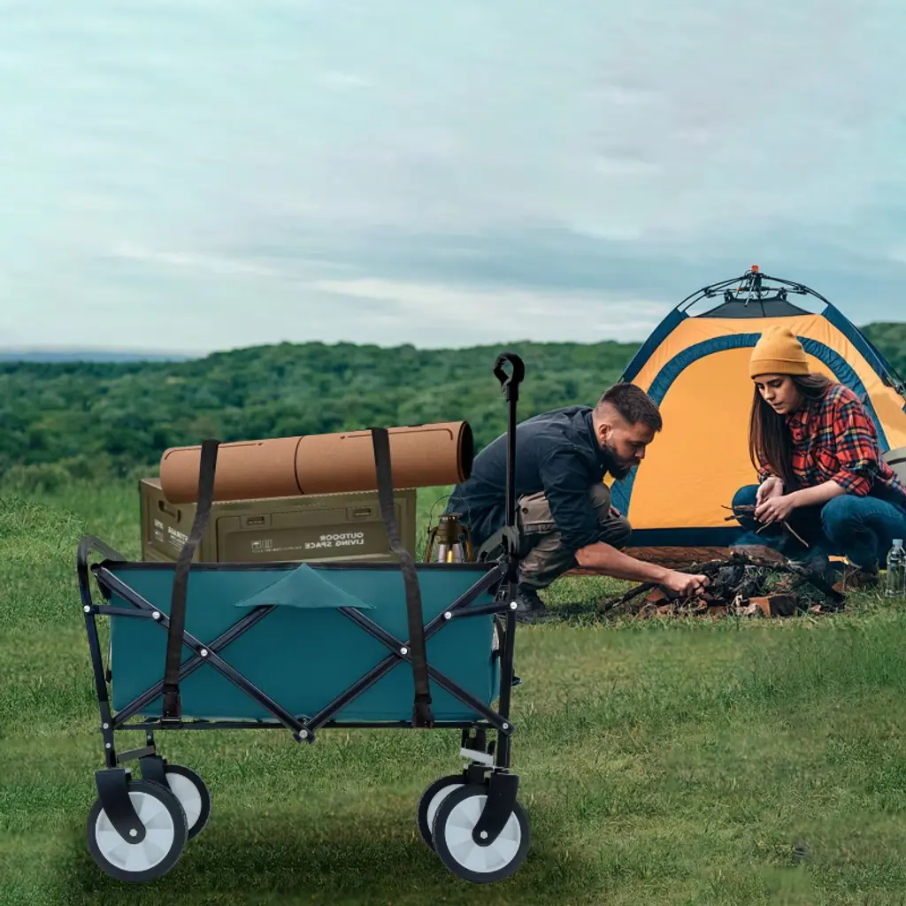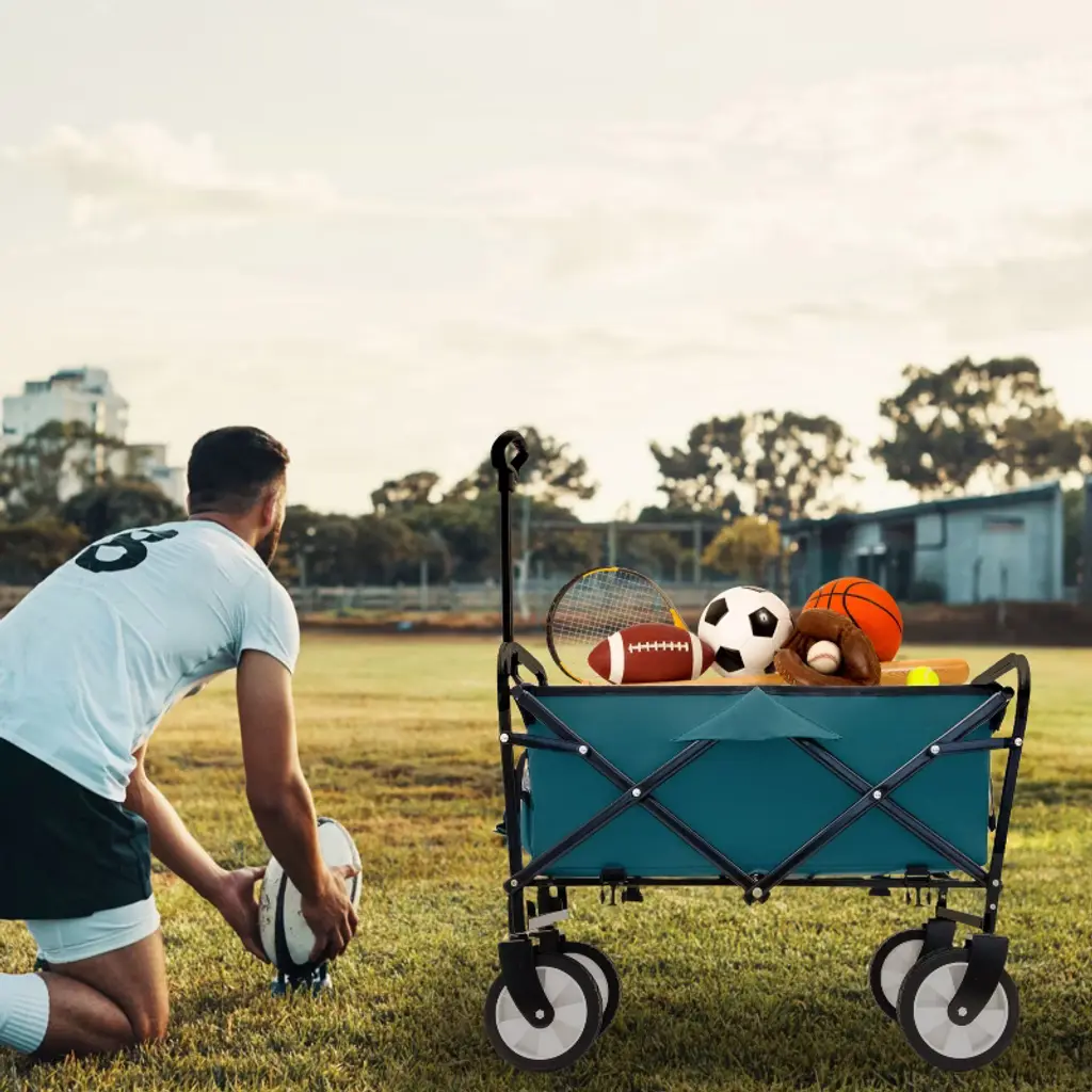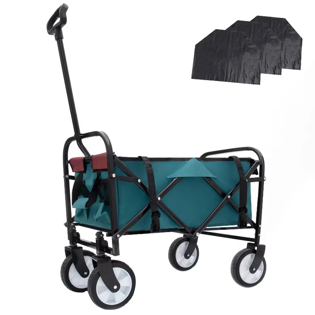 Ktmbdw Collapsible Folding Heavy Duty Utility Wagon Cart For Outdoor Sports, 225 Pounds Weight Capacity, Camping, Garden, Shopping With 3Pcs Liner Bag