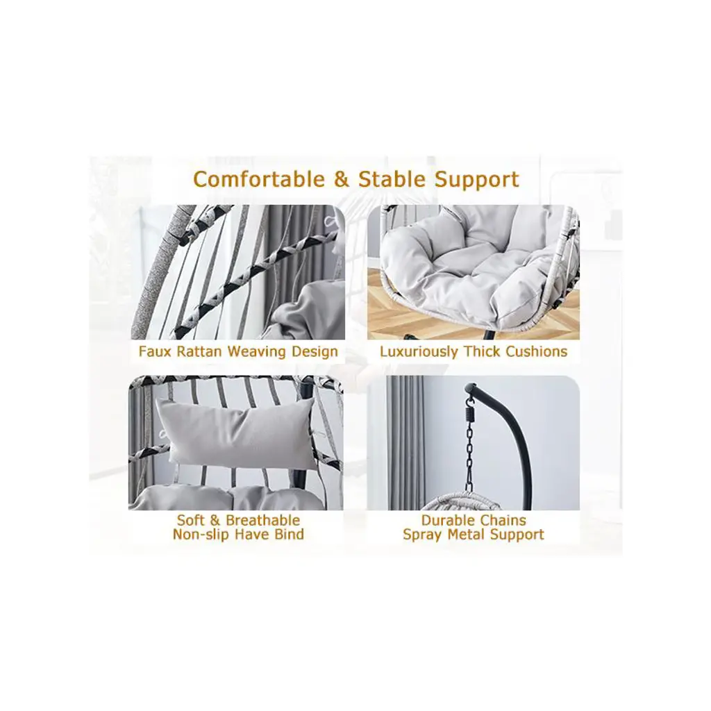 Ktmbdw Egg Chair Outdoor With Stand, Indoor Iron Wicker Hanging Egg Swing Chair With Cushion, 300lbs Capacity For Patio, Bedroom, Garden (Gray)