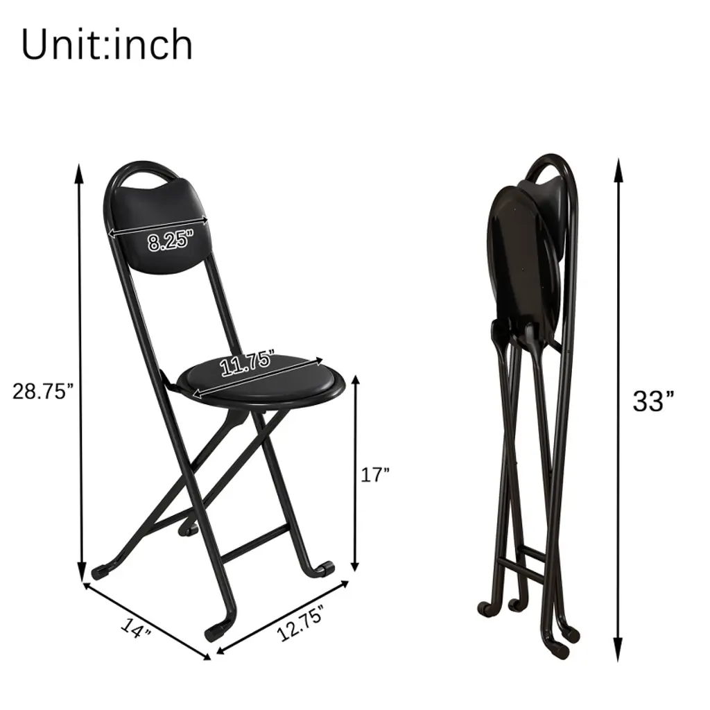 Ktmbdw Folding Stool Set Of 2, Portable Folding Chairs With Cushion And Back, Padded Folding Stool For Outdoor Indoor Kitchen Shop Cafe - Black