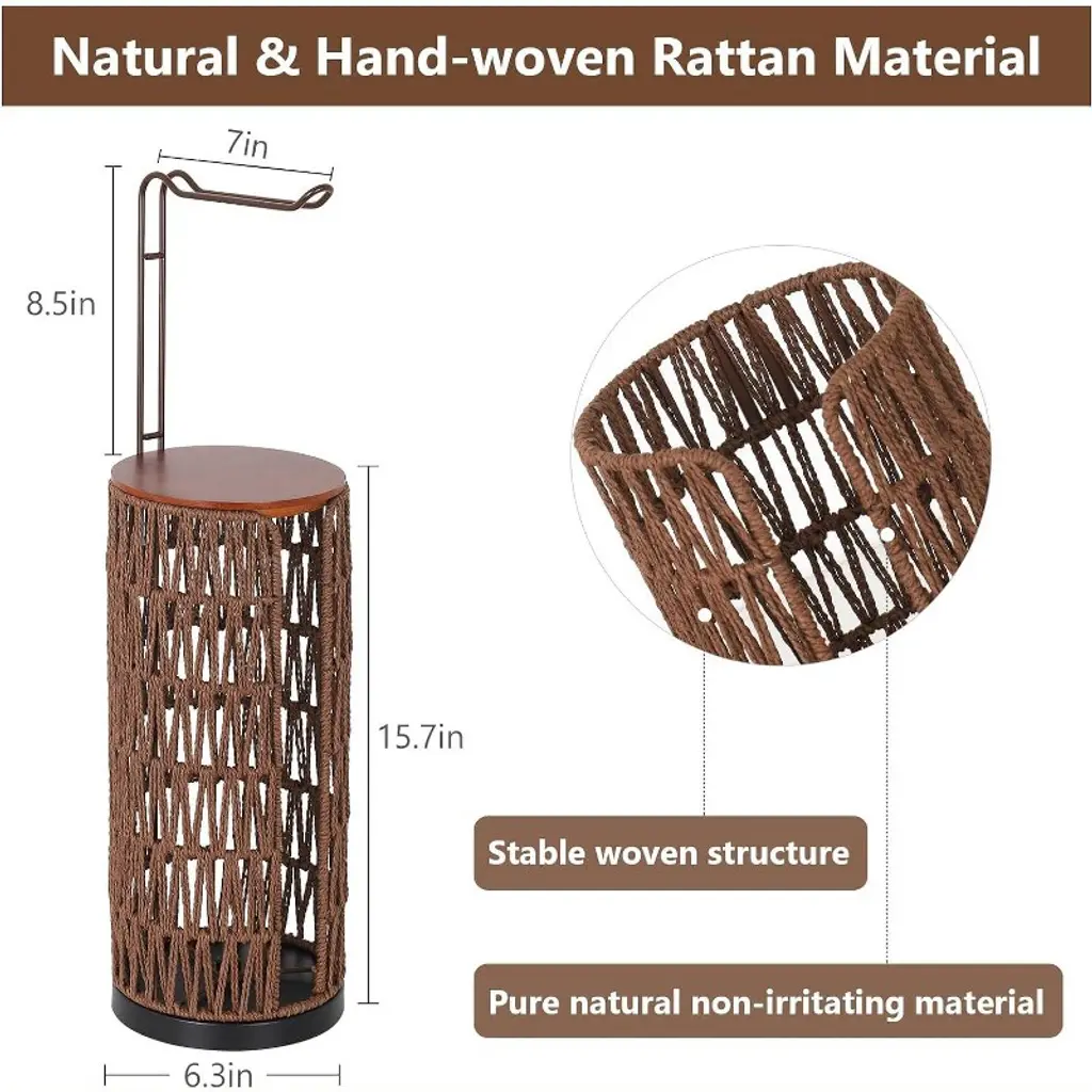 Ktmbdw Freestanding Toilet Paper Holder With Storage ̈C Holds 3 Spare Rolls, Easy Assembly, Rattan Finish, Space-saving Bathroom Organize, Walnut