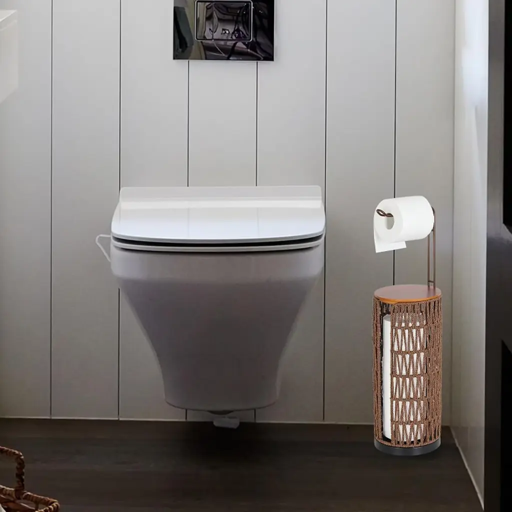This freestanding toilet paper holder is space saving and movable, the toilet paper holders with storage can be moved to a reachable place next to you and can be used in condos£»Toilet paper holder stand perfect for bathrooms with no wall mount fixtures£¬Great for guest bathrooms, half baths, powder rooms, and smaller spaces where storage is limited,use the boho bathroom decor to create instant storage space.
