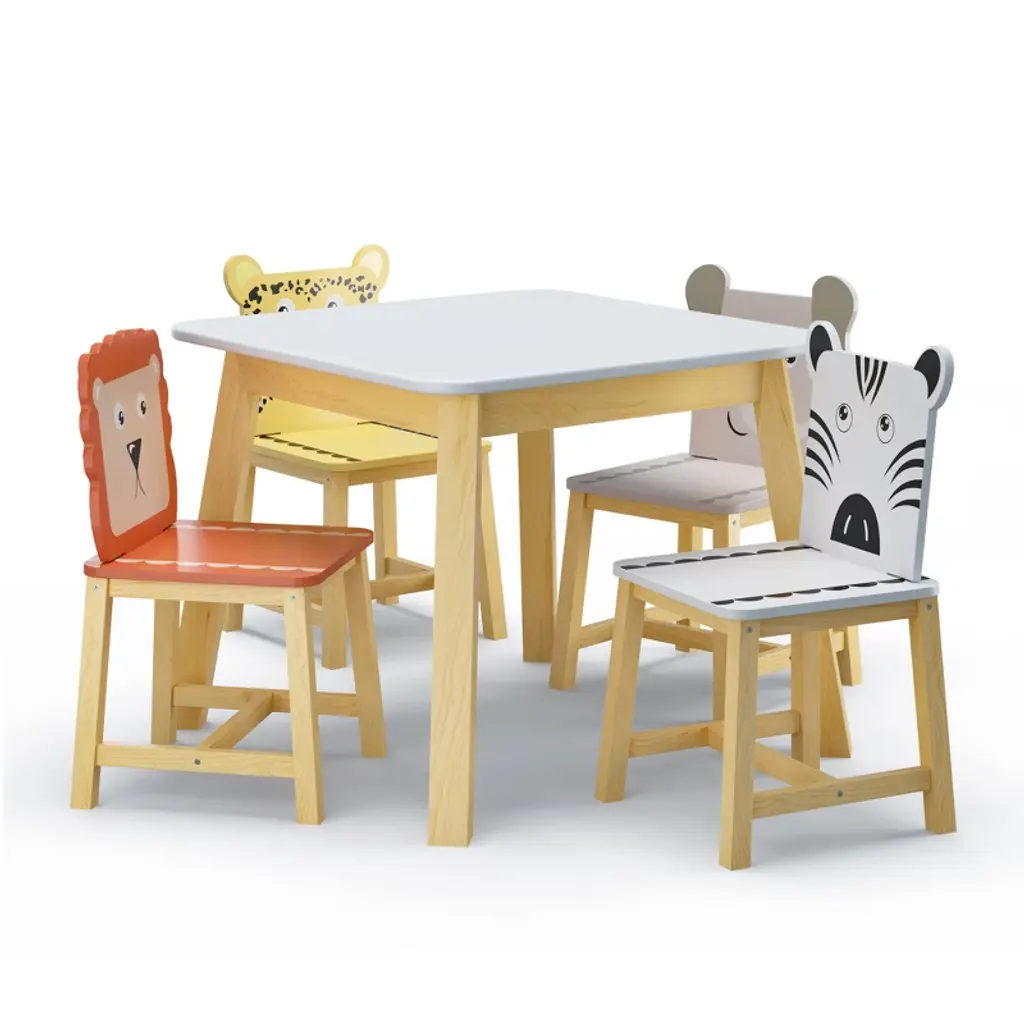 Ktmbdw Kids Table With 4 Chairs Set For Toddlers, Boys, Girls, 5 Piece Kiddy Table And Chairs Set, Natural