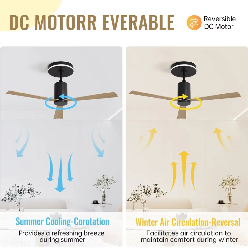 Ktmbdw Modern Ceiling Fans 52 Inch Ceiling Fan Without Light, Outdoor Ceiling Fan, Traditional 3 Abs Blade Design, Black