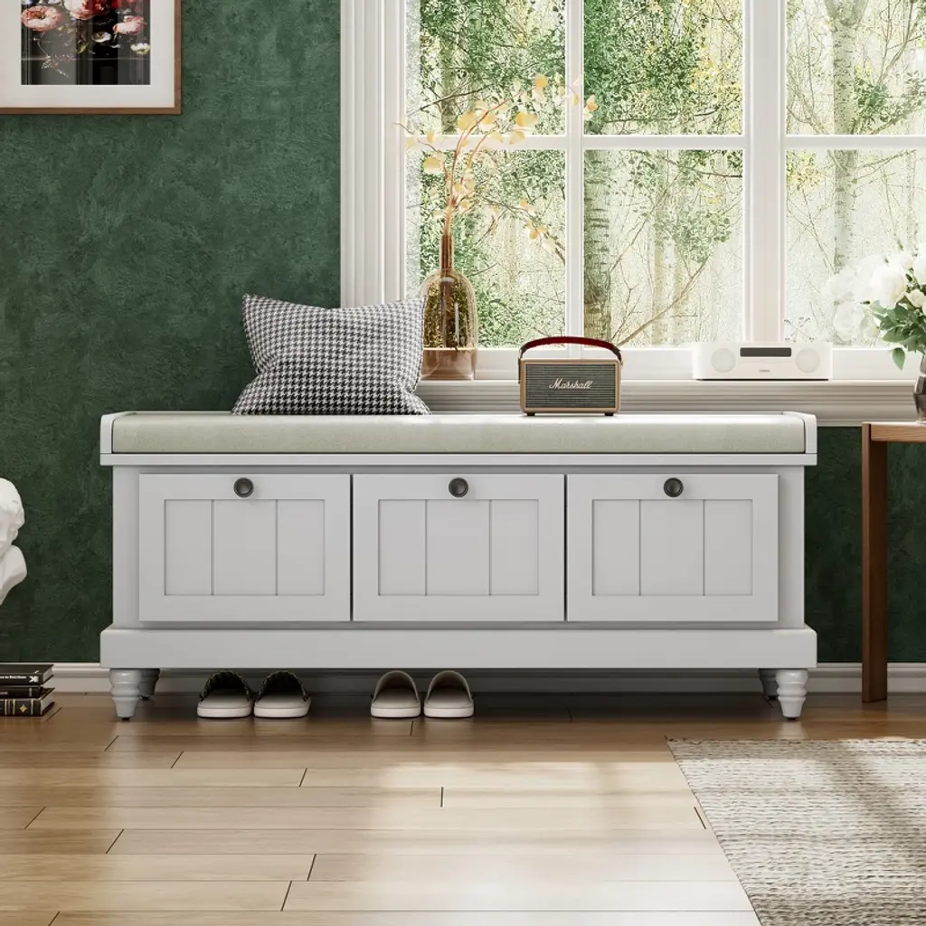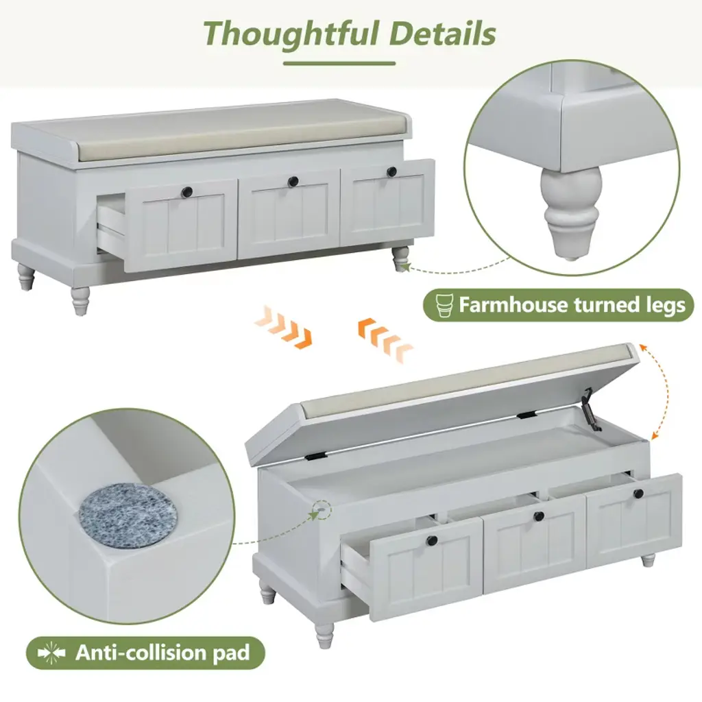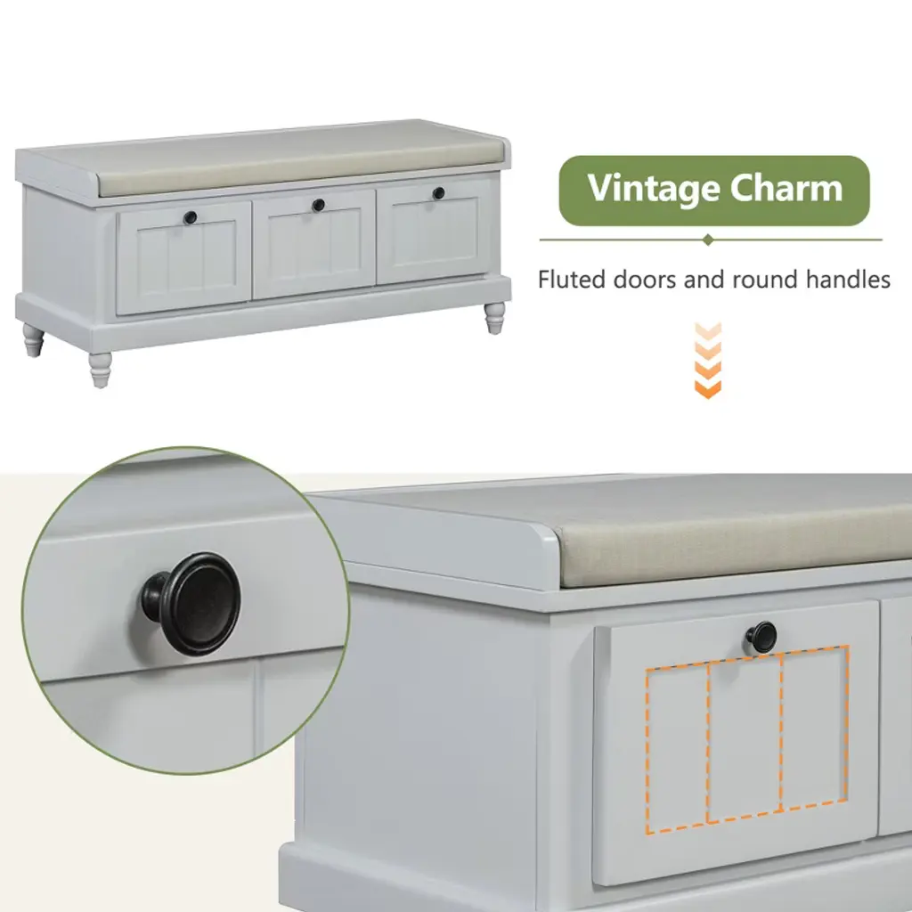 Ktmbdw Shoe Storage Bench With Cushion, Elegant Entryway Bench With 3 Drawers And Hidden Compartment For Entryway, Living Room, Hallways, Light Gray
