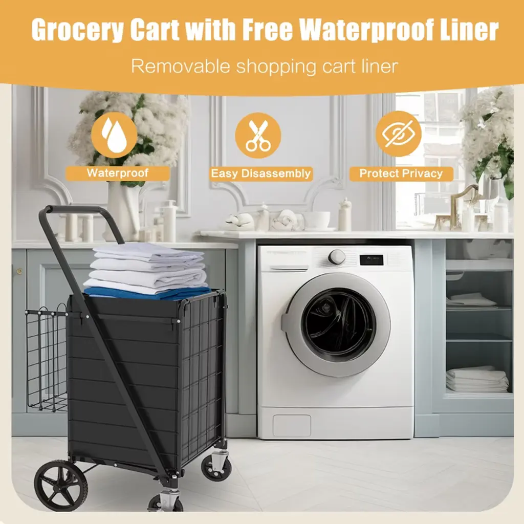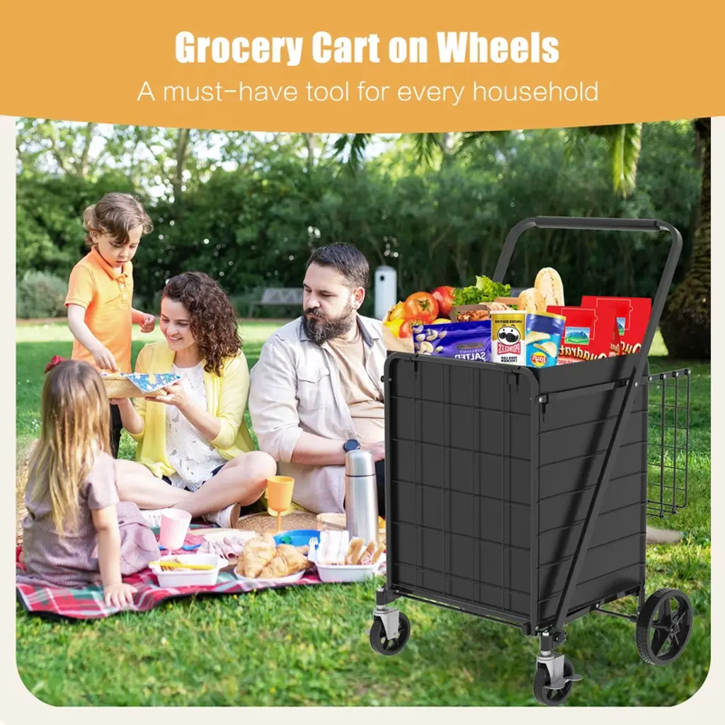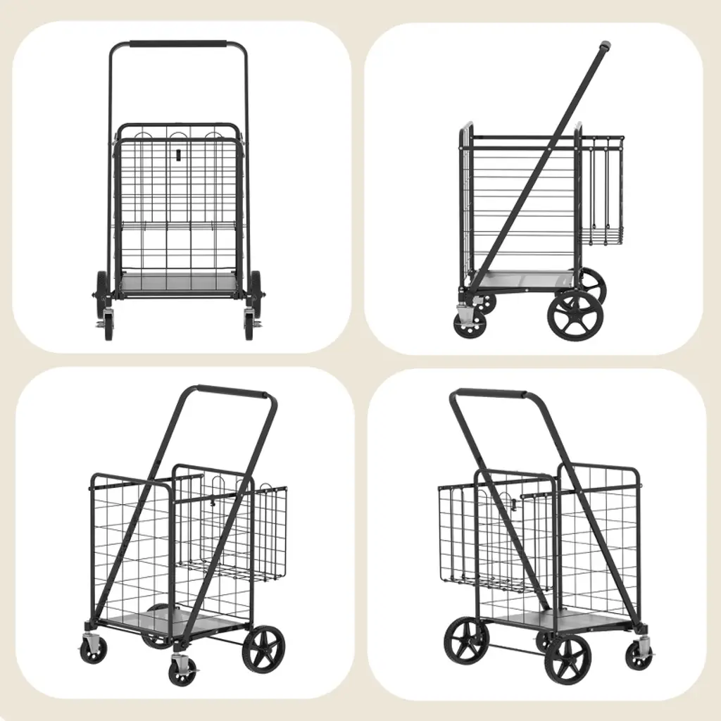 Ktmbdw Utility Cart With Wheels, Shopping Cart With Brake For Grocery, Laundry And Stair Climber Cart, Compact And Foldable, Black & Black