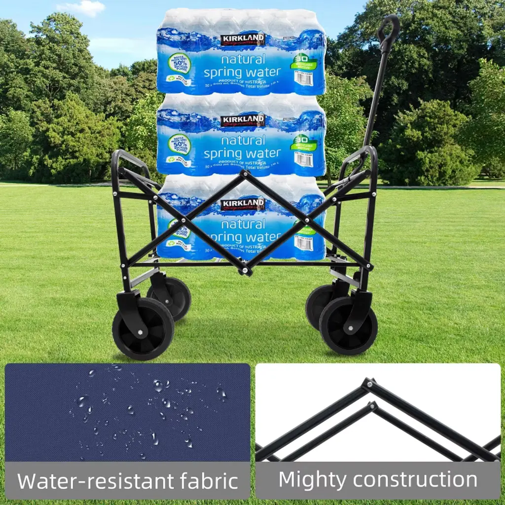 Ktmbdw Wagon Cart With Wheels Foldable - Folding Utility Heavy Duty Wagons Carts For Sports, Camping And Shopping (With 3Pcs Liner Bag) Dark Blue