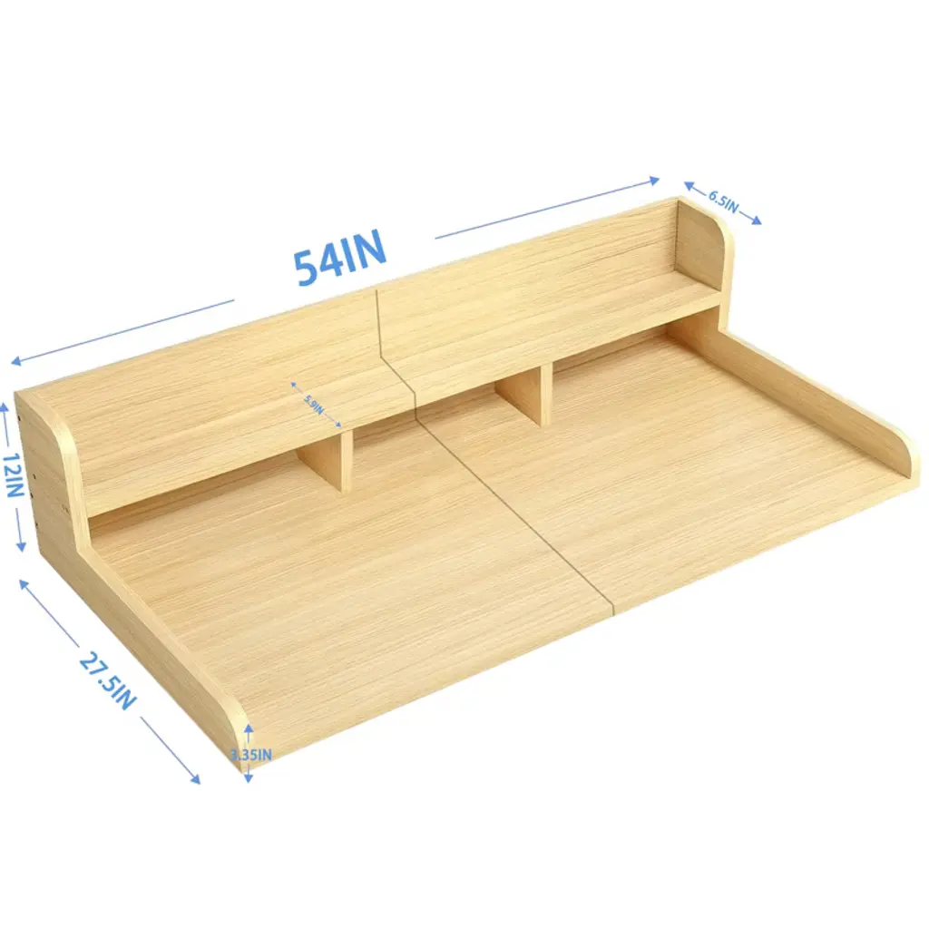 Turn your laundry room into a functional space with this washer dryer countertop. Measuring 54 inches long, 27.5 inches wide and 12 inches high, and with an extra divider compared to other laundry countertops, our washer and dryer countertop not only provides superb storage capacity for detergents, fabric softener essentials, but the spacious countertop is perfect for sorting and organizing clothes.
