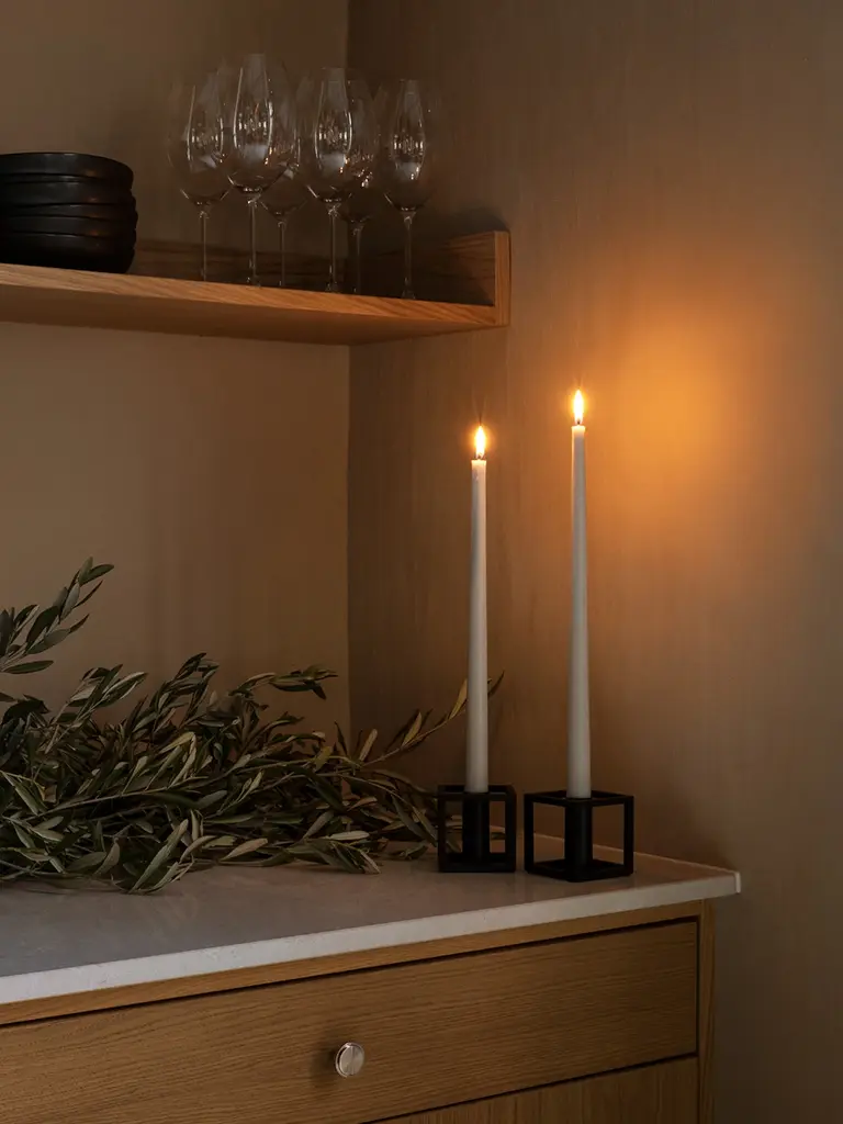 With a sharp sense of contemporary Functionalist style, Mogens Lassen designed the iconic Kubus candleholder in 1962, a piece once reserved solely for family and close architect colleagues. The Kubus is still crafted in Denmark, and among architects and design connoisseurs it has acheived the status of a modern international design icon. The story about Kubus 1: Architect Mogens Lassen was commissioned to design the interior for a restaurant in North Zealand, Denmark, and it was within the context of this assignment that the Kubus 1 was born. The square-shaped Kubus 1 gathered people around the table just as Mogens intended, and its characteristic shape and simple light created an atmosphere of coziness throughout the entire restaurant. The Kubus 1 still decorates tables in the very same restaurant, because good design lives on for generations.