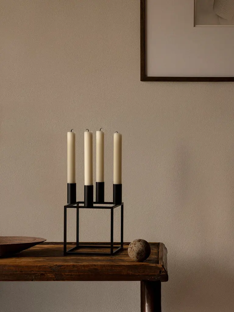 With a sharp sense of contemporary Functionalist style, Mogens Lassen designed the iconic Kubus candleholder in 1962, a piece once reserved solely for family and close architect colleagues. The Kubus is still crafted in Denmark, and among architects and design connoisseurs it has achieved the status of a modern international design icon.