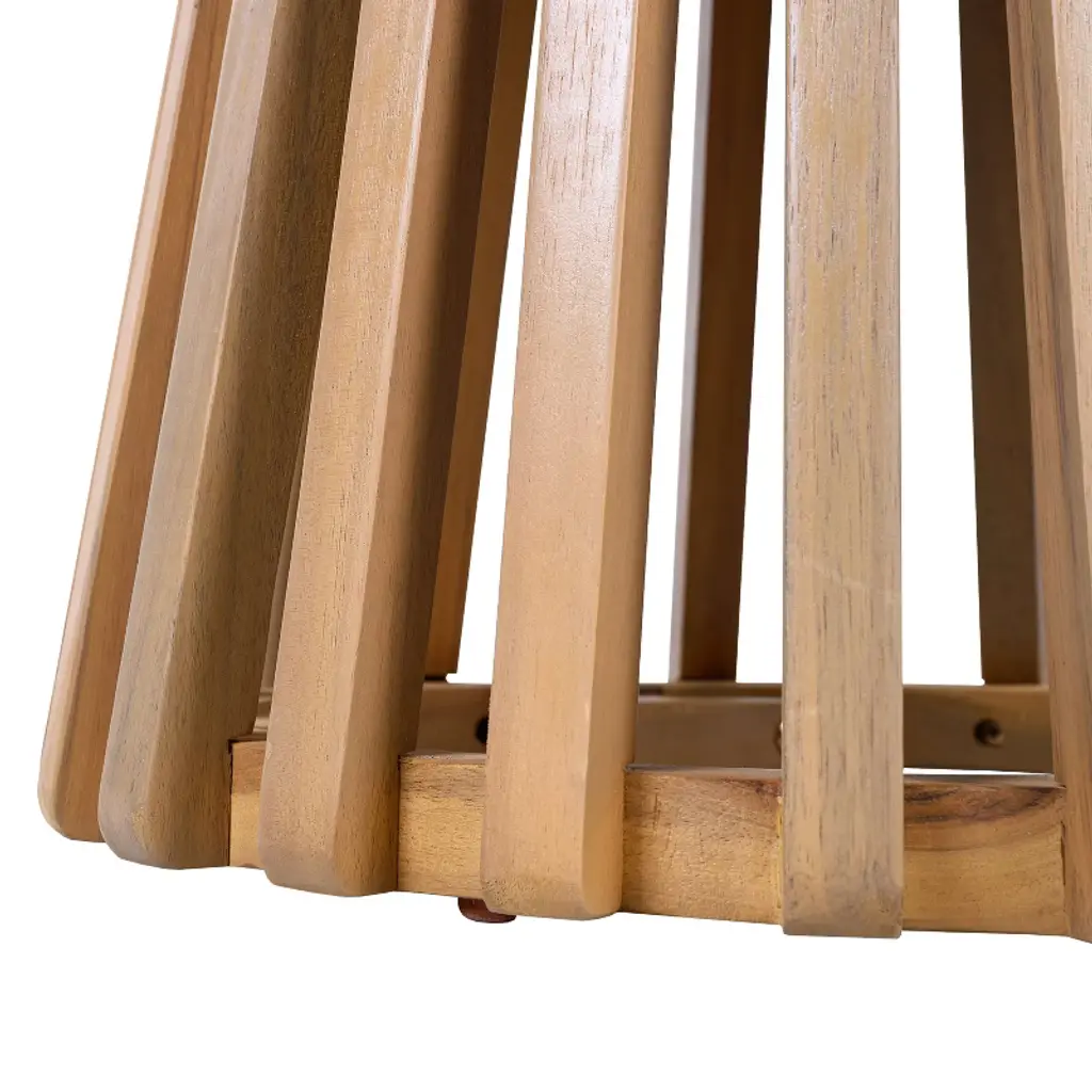 The Kumasinova 17.75" Rustic Outdoor Patio Side Table adds natural charm and rustic elegance to any outdoor setting. Crafted from premium Acacia wood, the light teak finish creates a warm and inviting look that enhances your patio, lawn, or poolside. The round top and slatted base design ensure both practicality and unique style, offering a stable, sturdy table with a weight capacity of up to 81.12lbs. Whether it's for holding drinks, snacks, or decorative pieces, this versatile side table is an ideal companion for any outdoor gathering.